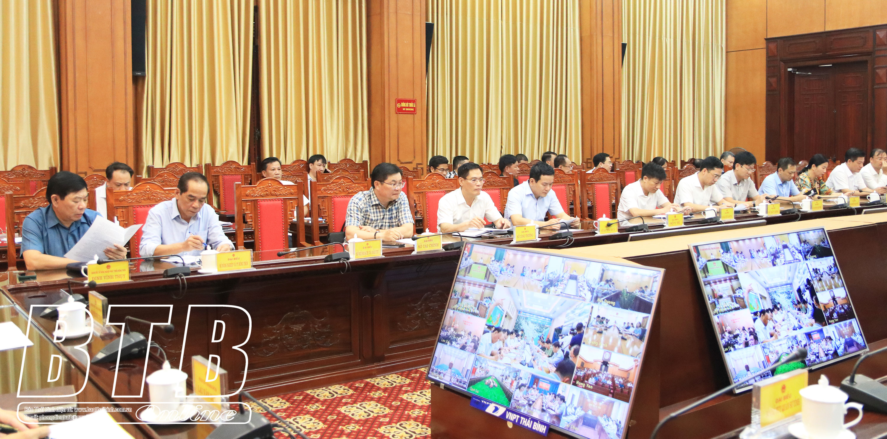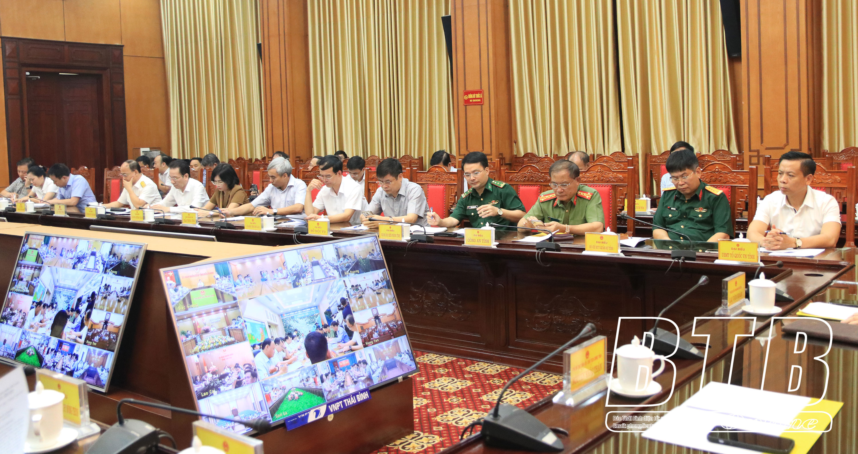 Các đồng chí lãnh đạo tỉnh dự hội nghị tại điểm cầu Thái Bình.