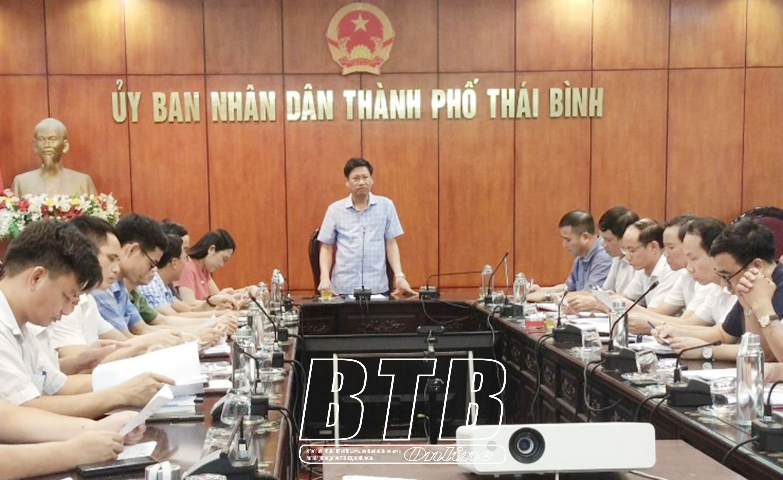 UBND thành phố Thái Bình tổ chức họp triển khai các biện pháp ứng phó bão số 1.