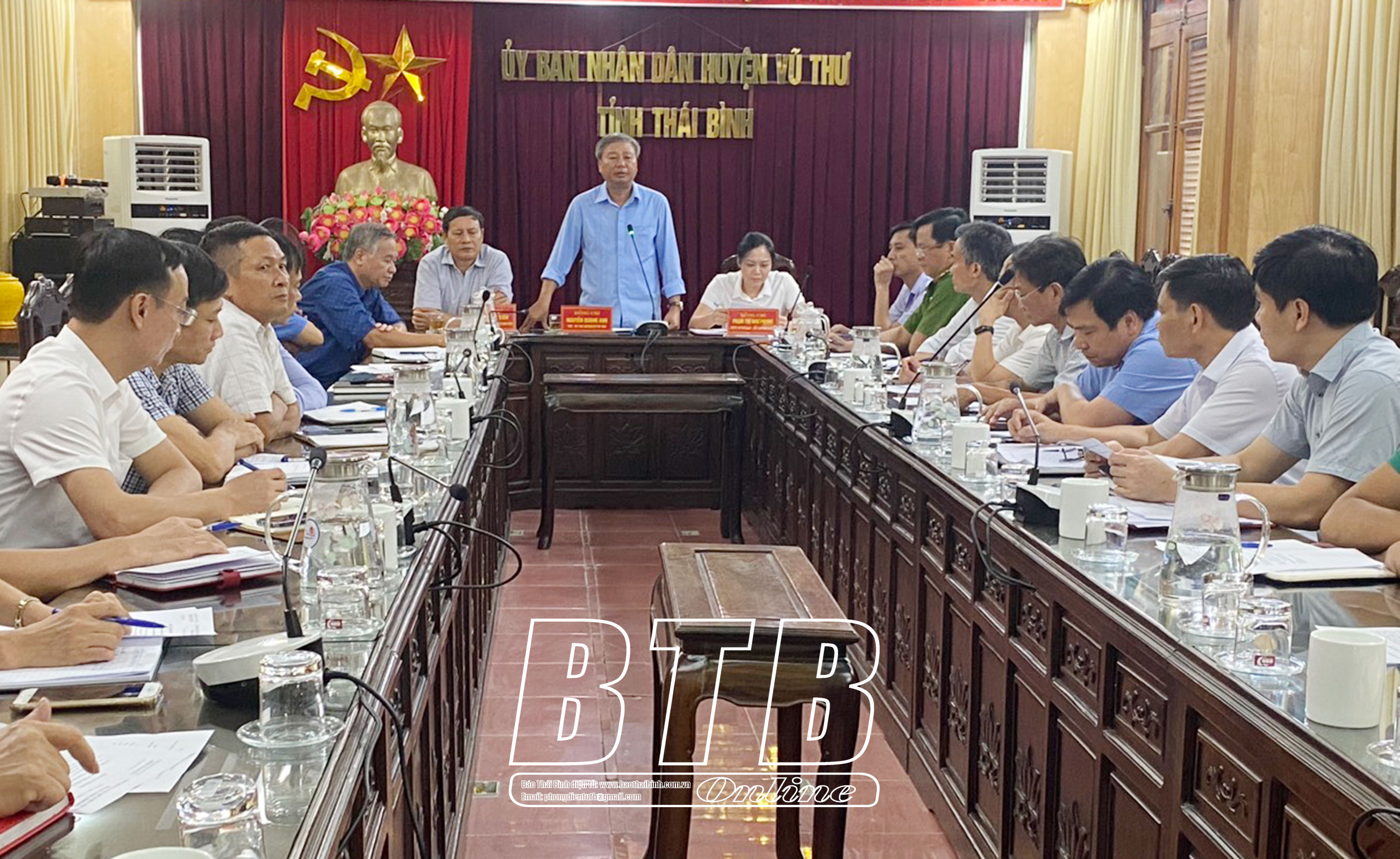 Huyện Vũ Thư tổ chức họp triển khai các biện pháp ứng phó bão số 1.