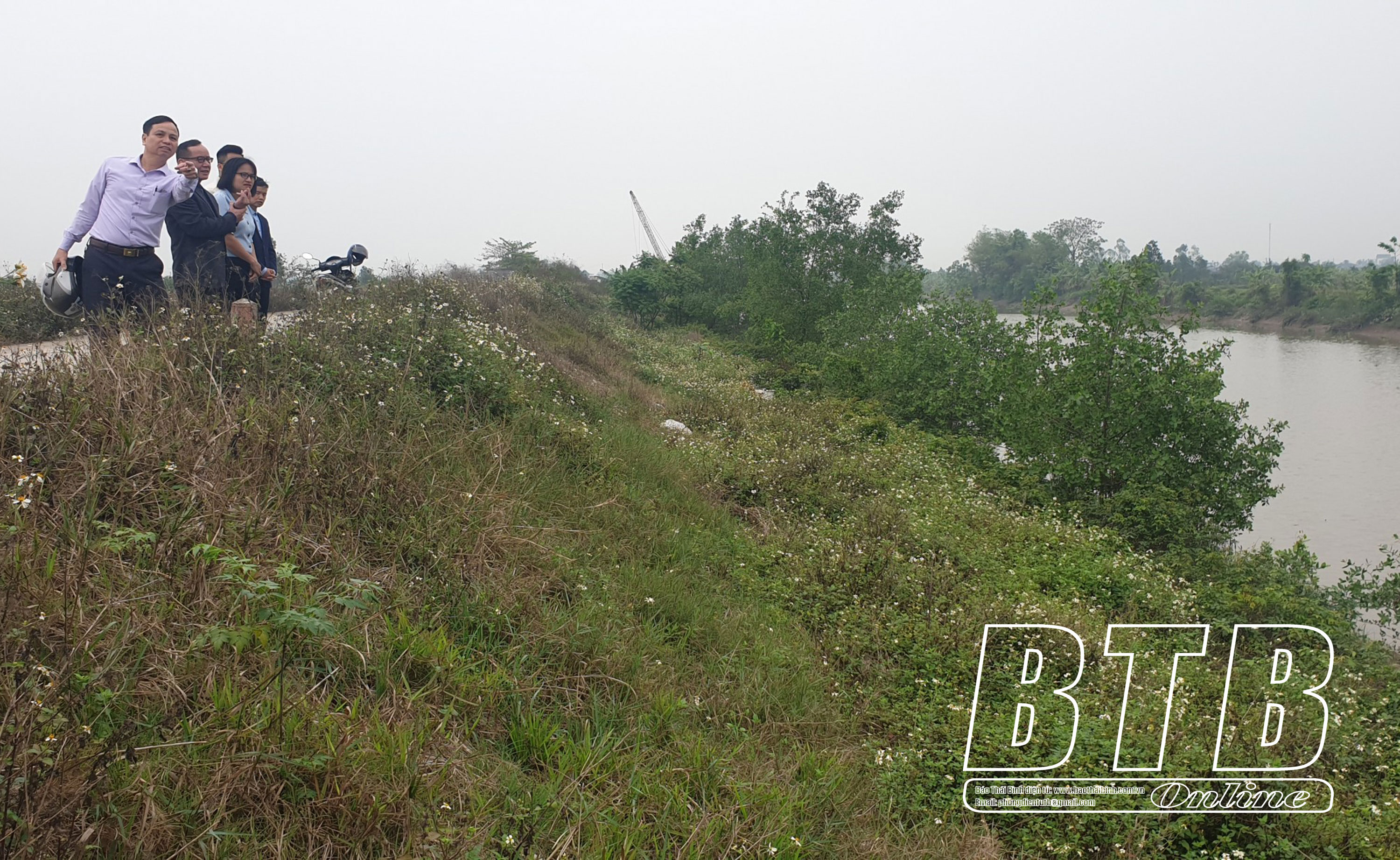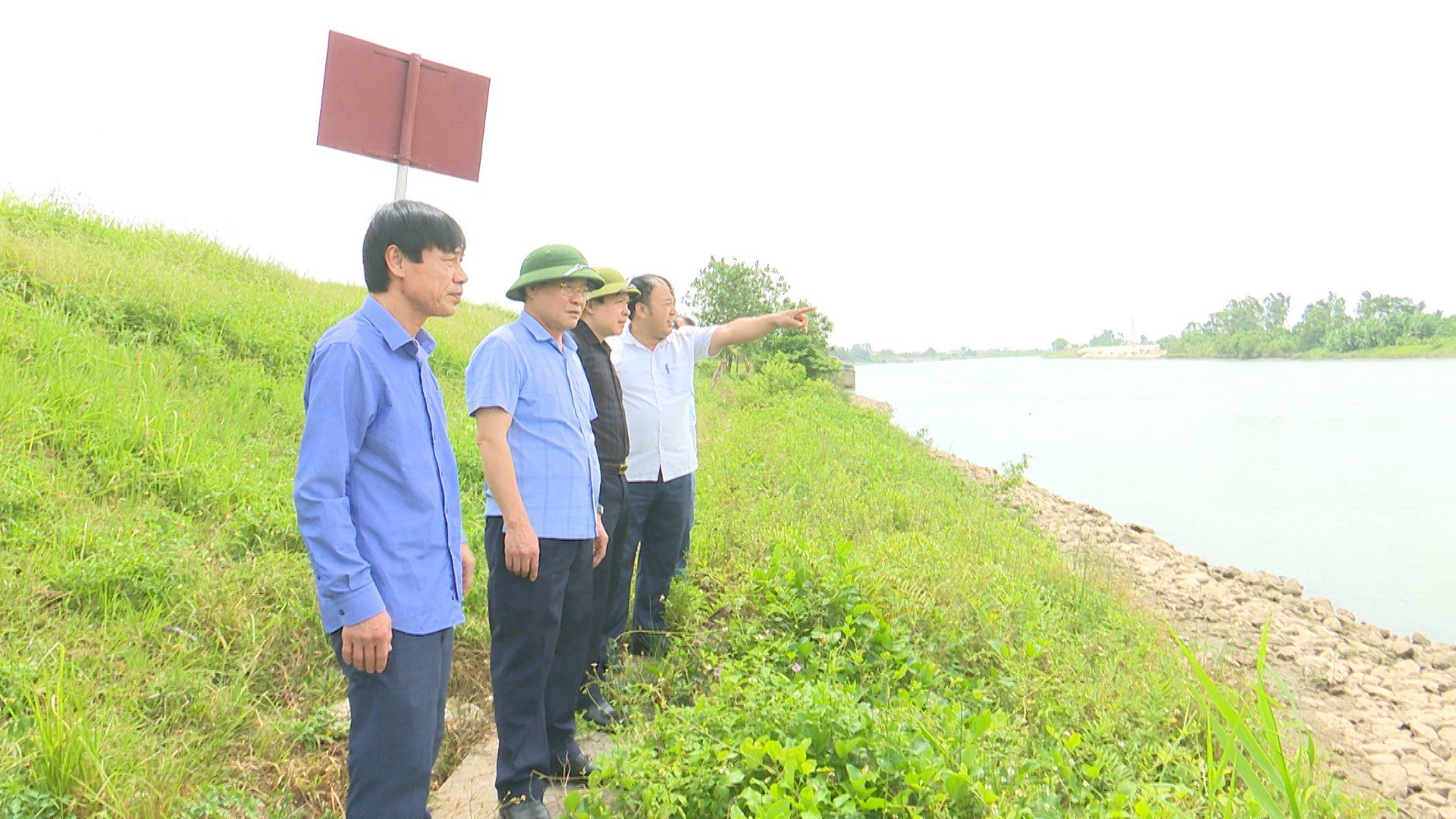 Các đồng chí lãnh đạo huyện Đông Hưng kiểm tra, chỉ đạo công tác phòng, chống bão số 1 tại kè Hoa Nam.