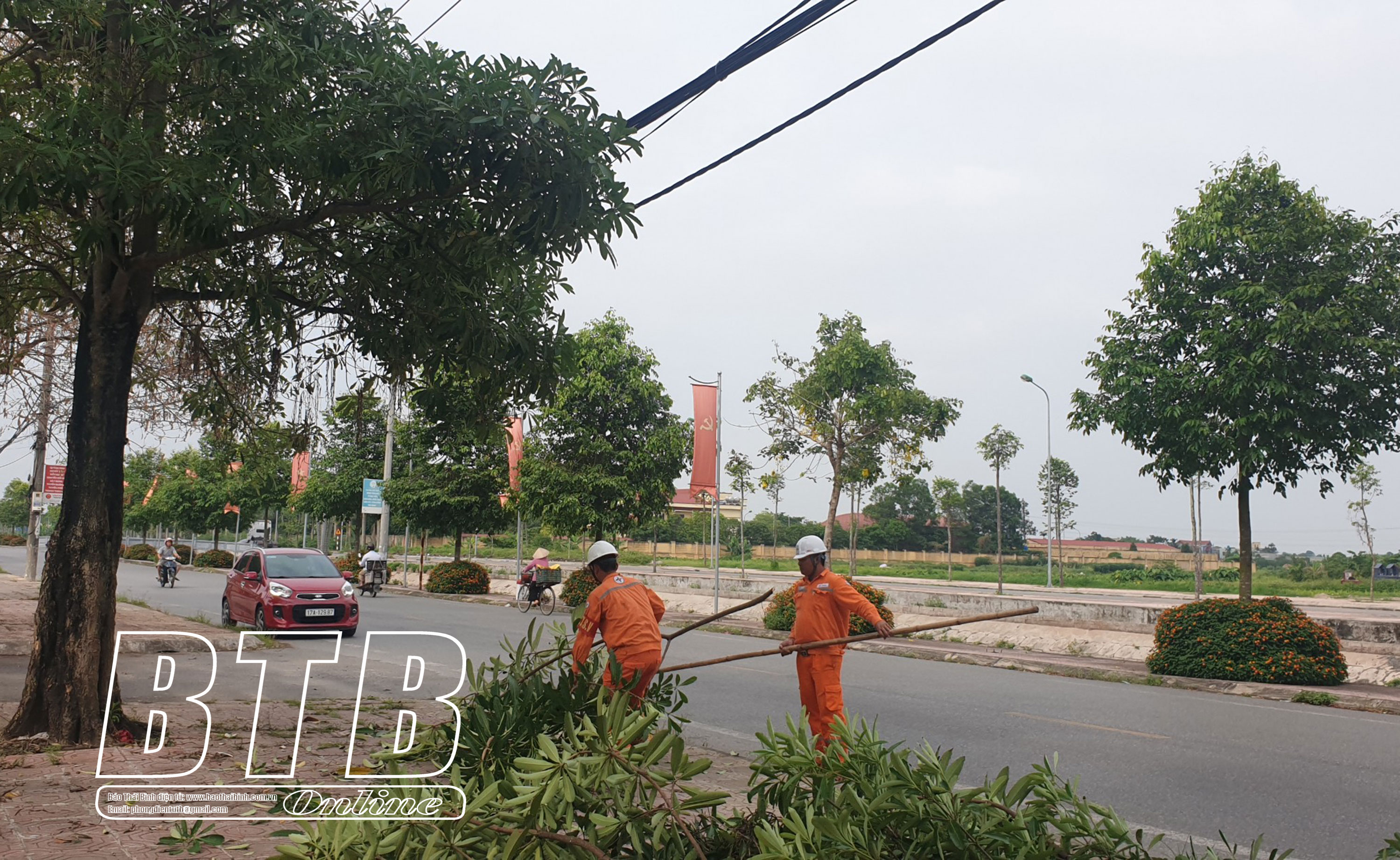 Điện lực Kiến Xương chủ động cắt tỉa cây lớn để bảo đảm an toàn trong trường hợp bão đổ bộ.