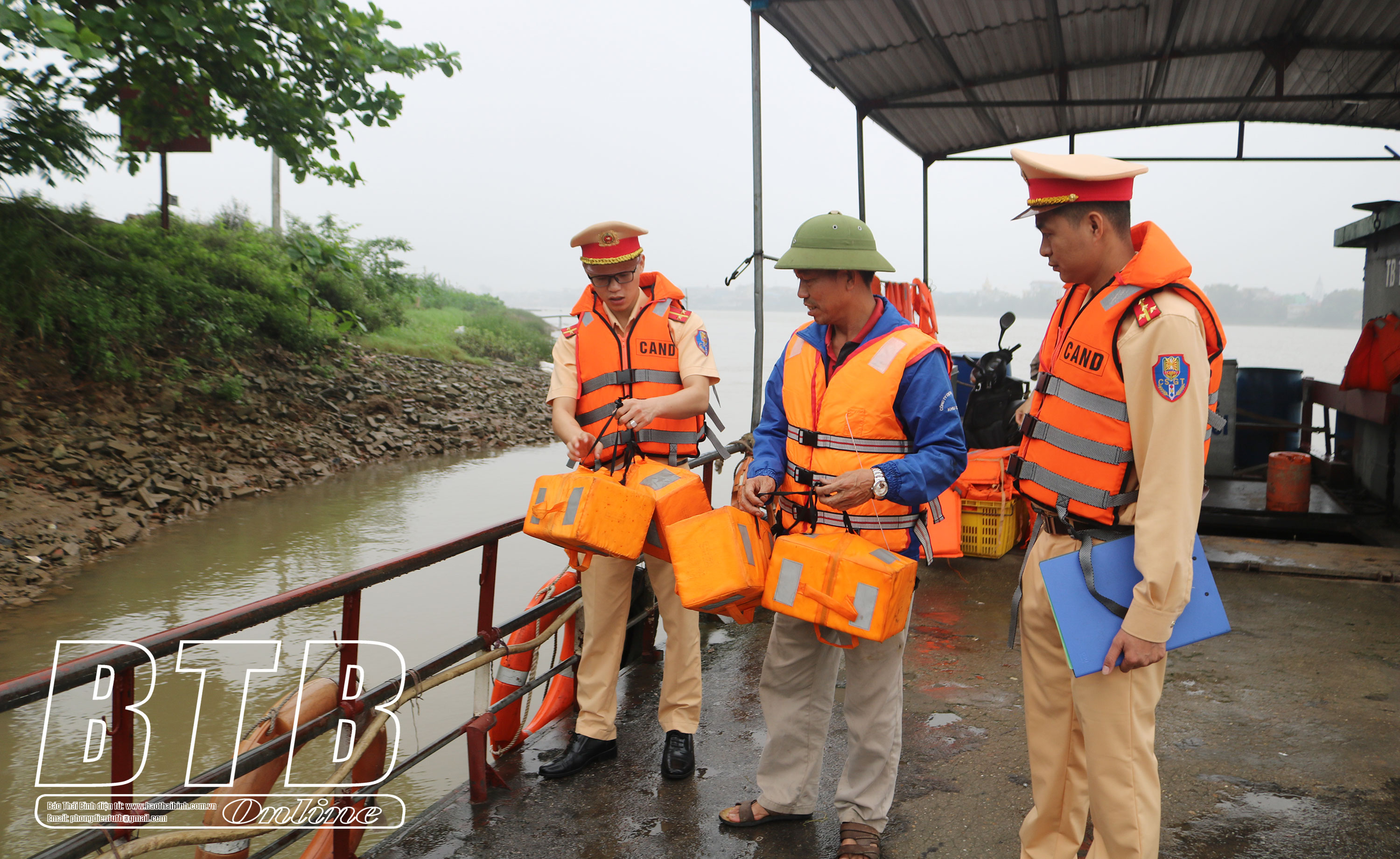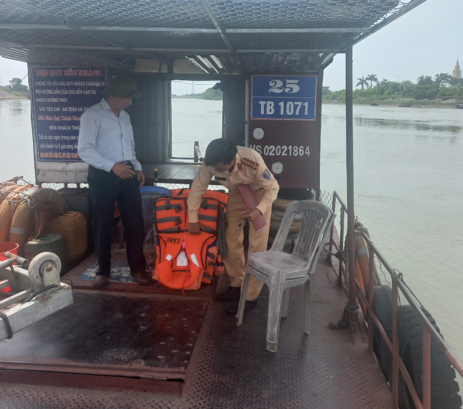 Đội Cảnh sát đường thủy, Phòng Cảnh sát giao thông, Công an tỉnh kiểm tra các phương tiện trên tuyến bảo đảm an toàn trước cơn bão số 1.