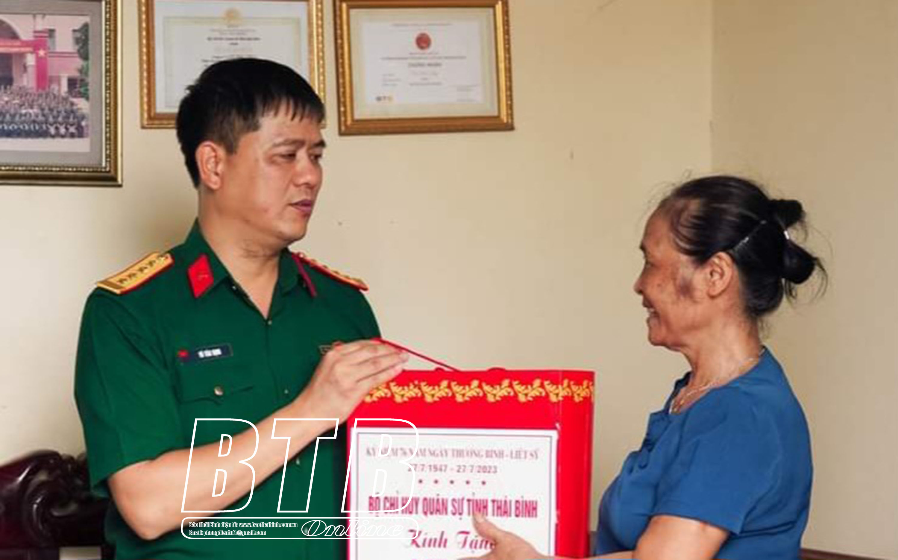 Lãnh đạo Bộ CHQS tỉnh đã thăm hỏi, động viên và trao 50 suất quà mỗi suất trị giá 800.000 đồng tới các gia đình chính sách, thân nhân liệt sĩ, người có công với cách mạng trên địa bàn tỉnh. Ban CHQS các huyện, thành phố tổ chức các đoàn công tác tới thăm hỏi, tặng quà các gia đình chính sách trên địa bàn đóng quân với số tiền hàng trăm triệu đồng; tổ chức trao 240 triệu đồng xây dựng 3 căn nhà tình nghĩa cho vợ liệt sĩ, thương binh hạng 2/4 và nạn nhân nhiễm chất độc da cam/Điôxin trên địa bàn các huyện Thái Thụy, Hưng Hà và Quỳnh Phụ.