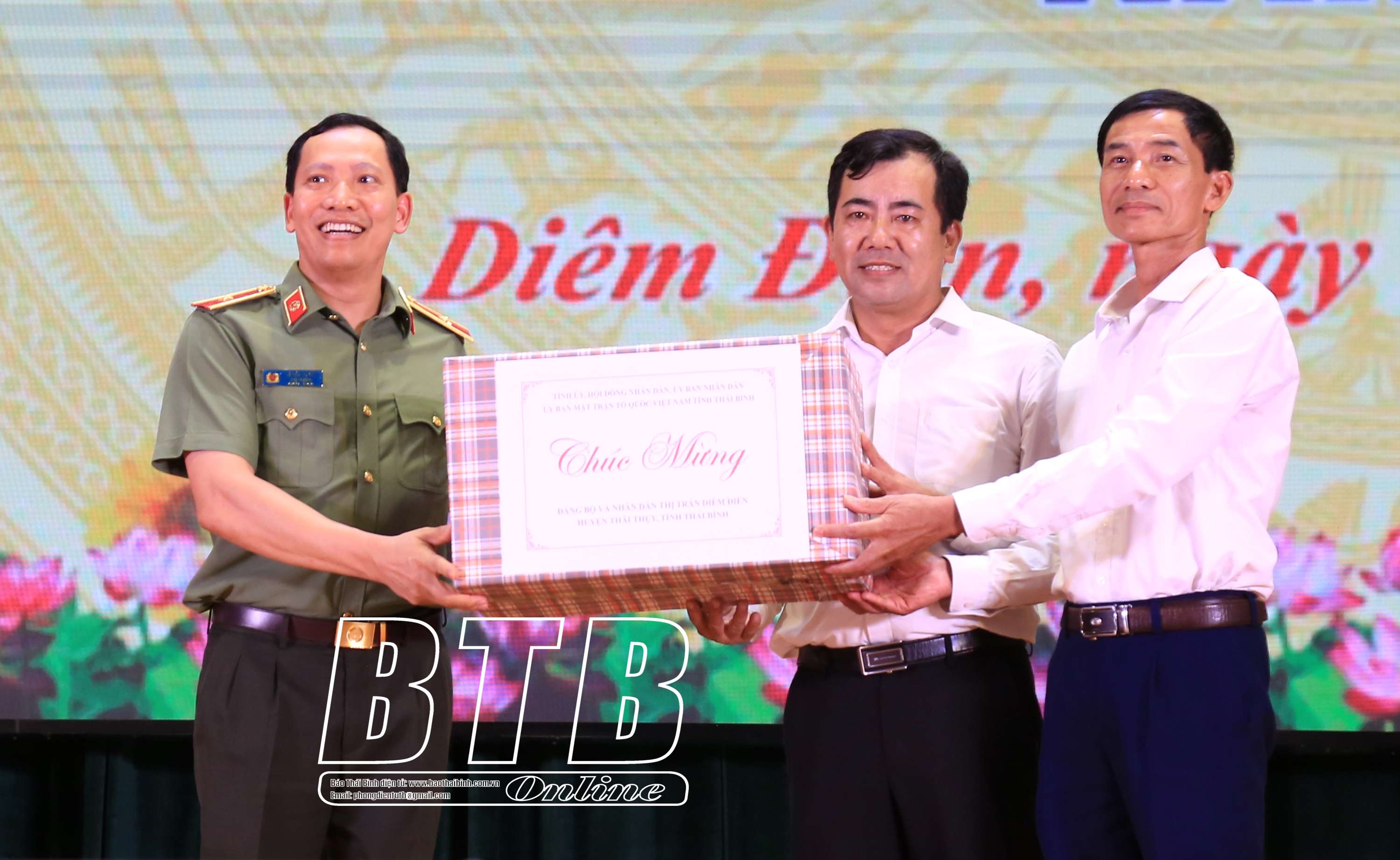 Lãnh đạo Bộ Công an tặng quà Đảng bộ, nhân dân thị trấn Diêm Điền (Thái Thụy).