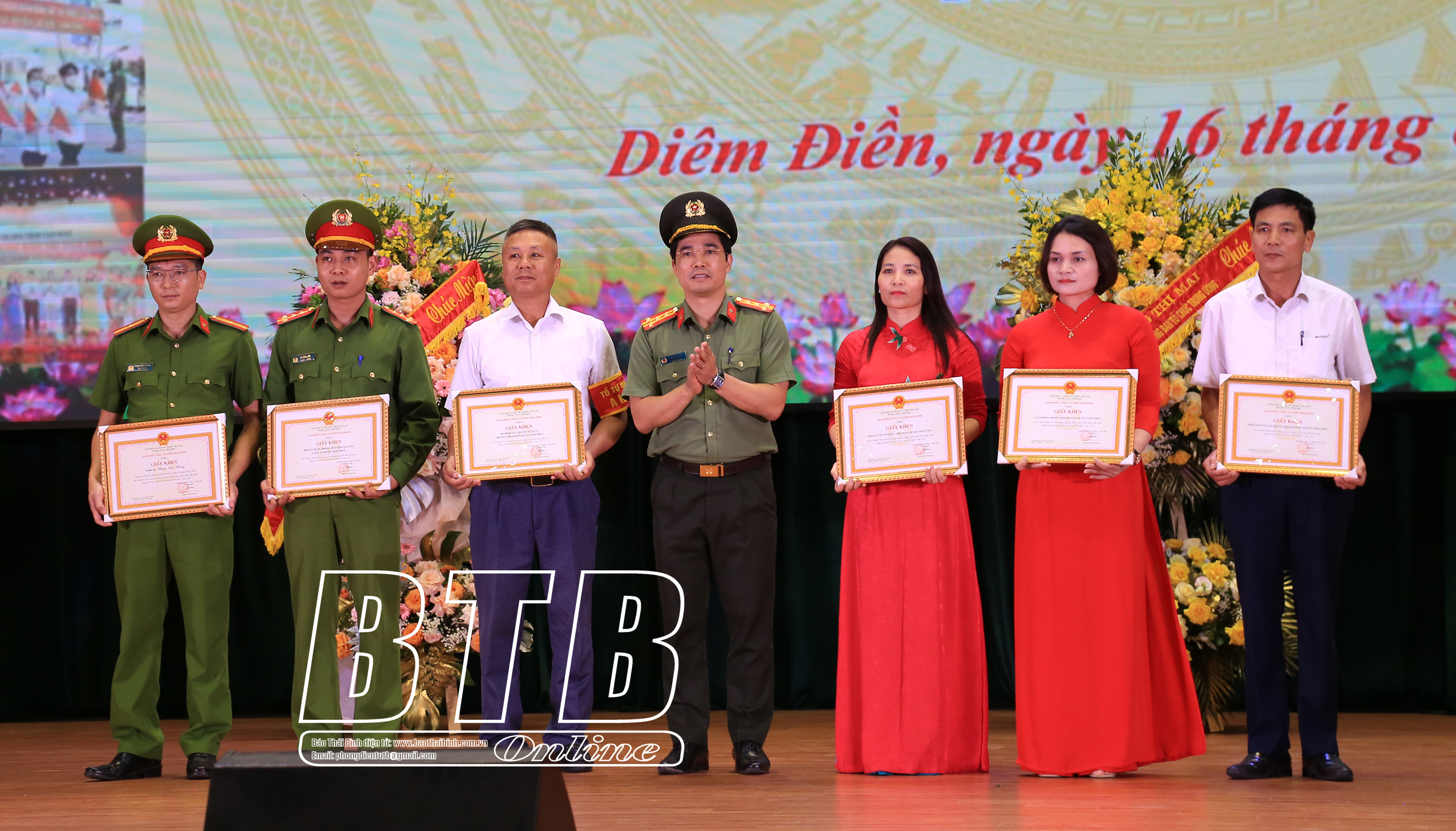 Lãnh đạo huyện Thái Thụy tặng giấy khen cho các tập thể, cá nhân có thành tích xuất sắc trong phong trào toàn dân bảo vệ ANTQ.