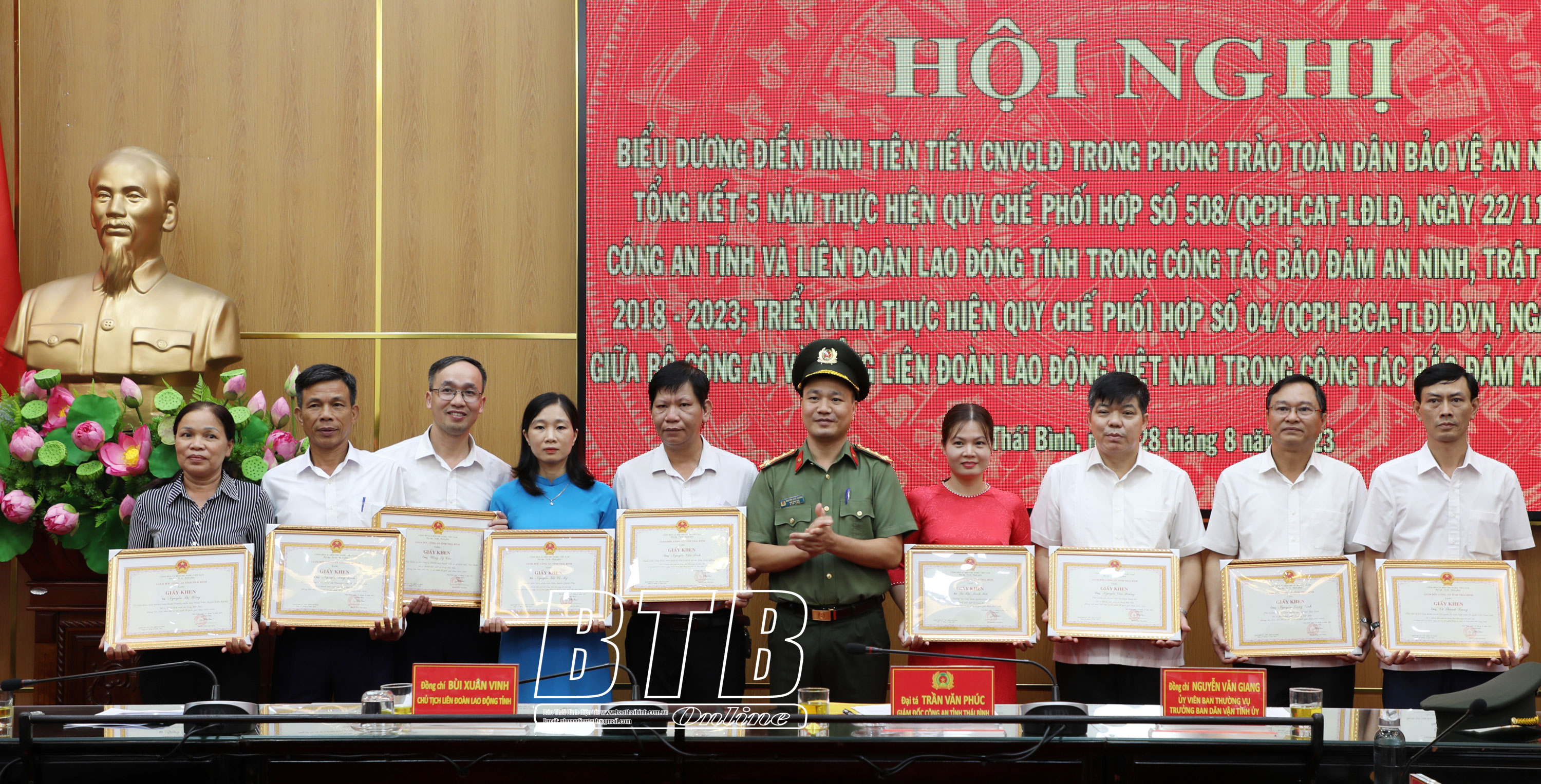 Dự hội nghị có các đồng chí: Nguyễn Văn Giang, Ủy viên Ban Thường vụ, Trưởng ban Dân vận Tỉnh ủy; Vũ Thanh Vân, Ủy viên Ban Thường vụ Tỉnh ủy, Chủ tịch Ủy ban MTTQ tỉnh; Đại tá Trần Văn Phúc, Ủy viên Ban Thường vụ Tỉnh ủy, Giám đốc Công an tỉnh.