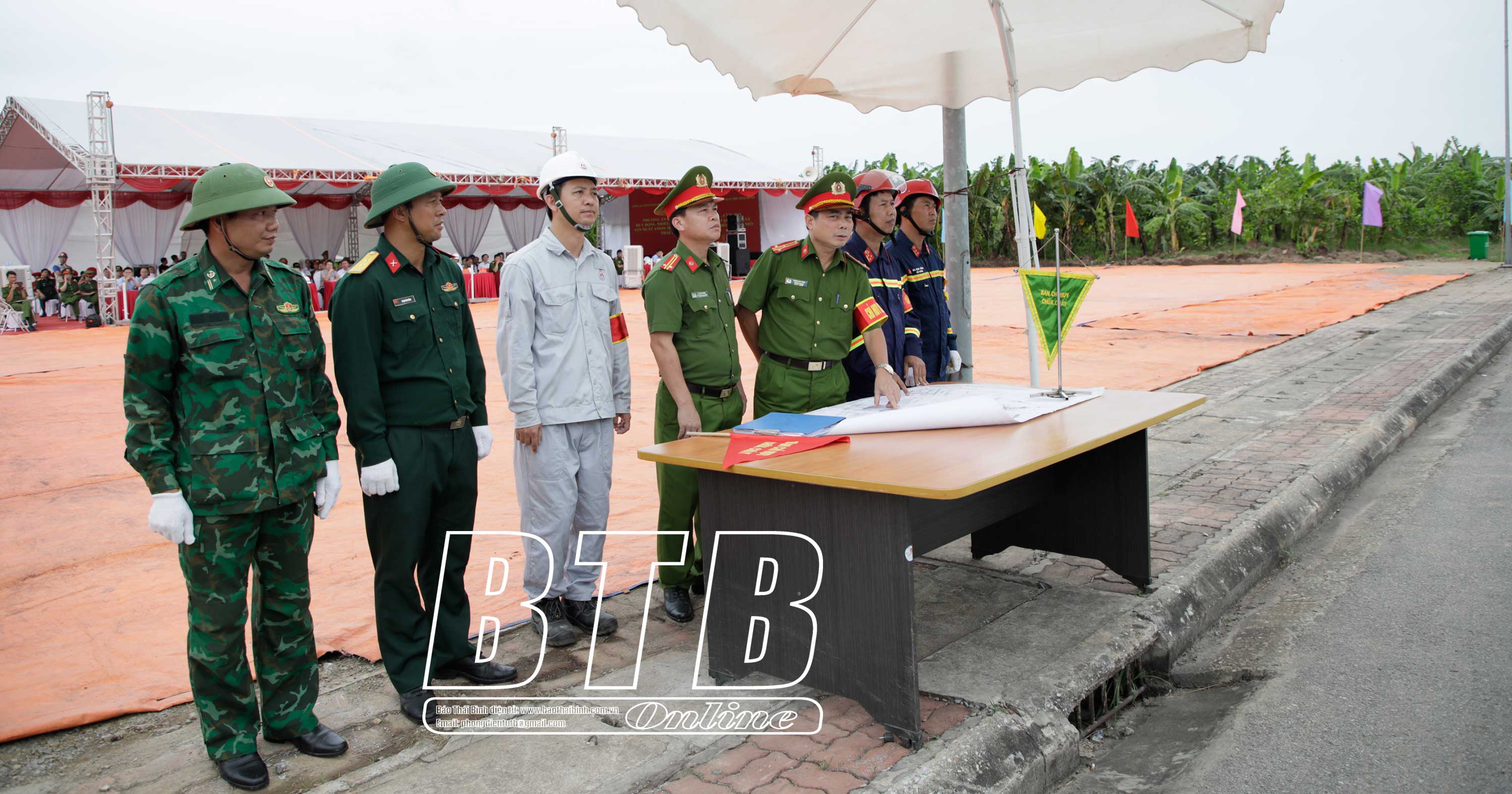 Nhận được tin báo, lực lượng, phương tiện của Phòng Cảnh sát PCCC và CNCH, Công an tỉnh đã được huy động đến hiện trường, phối hợp với lực lượng cơ sở triển khai các hoạt động chữa cháy. Gần 300 người và 45 phương tiện cơ giới, trong đó có nhiều phương tiện hiện đại được sử dụng, phù hợp với tình hình thực tế phục vụ công tác PCCC và CNCH. Các lực lượng, phương tiện đã hiệp đồng, phối hợp diễn tập với 4 giai đoạn: Lực lượng cơ sở triển khai chữa cháy, CNCH và ứng phó sự cố; lực lượng, phương tiện của Công an tỉnh tham gia chữa cháy, CNCH người bị thương; huy động lực lượng, phương tiện các đơn vị, tổ chức tham gia chữa cháy; xử lý sự cố hóa chất, khám nghiệm hiện trường, điều tra nguyên nhân vụ cháy sau khi đám cháy được dập tắt.