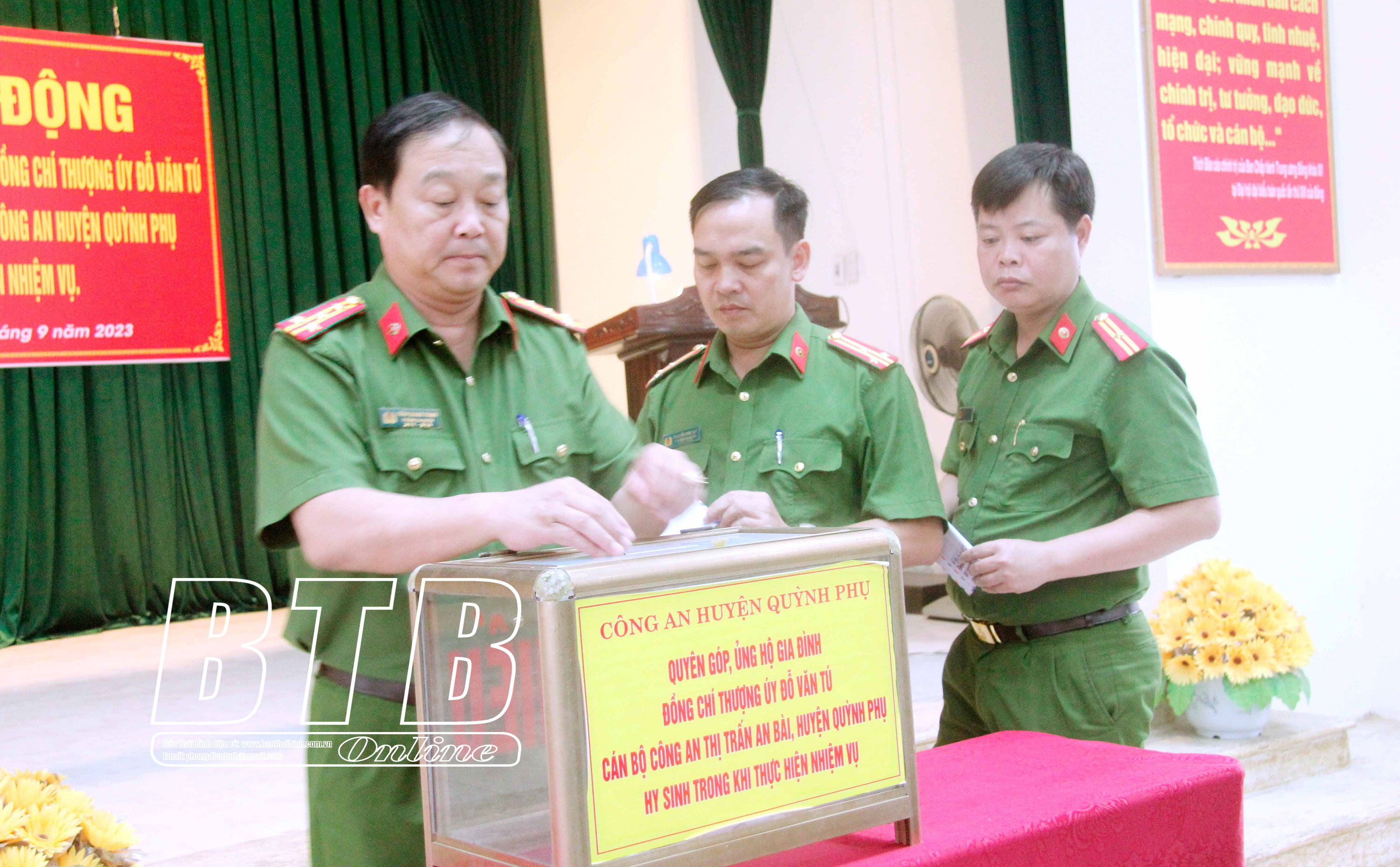 Công an huyện Quỳnh Phụ quyên góp ủng hộ gia đình thượng úy Đỗ Văn Tú.