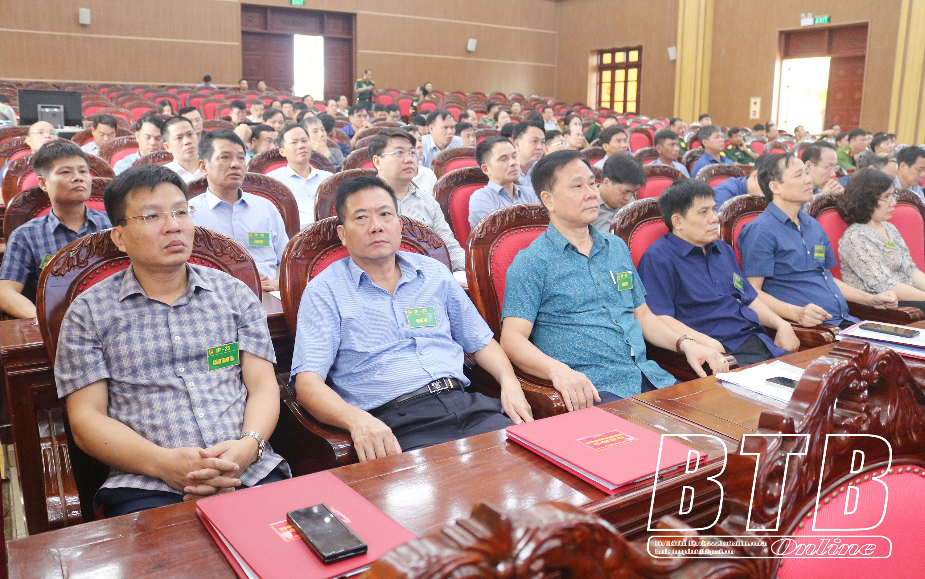 Các đồng chí lãnh đạo tỉnh và đại biểu dự khai mạc diễn tập khu vực phòng thủ thành phố Thái Bình năm 2023.