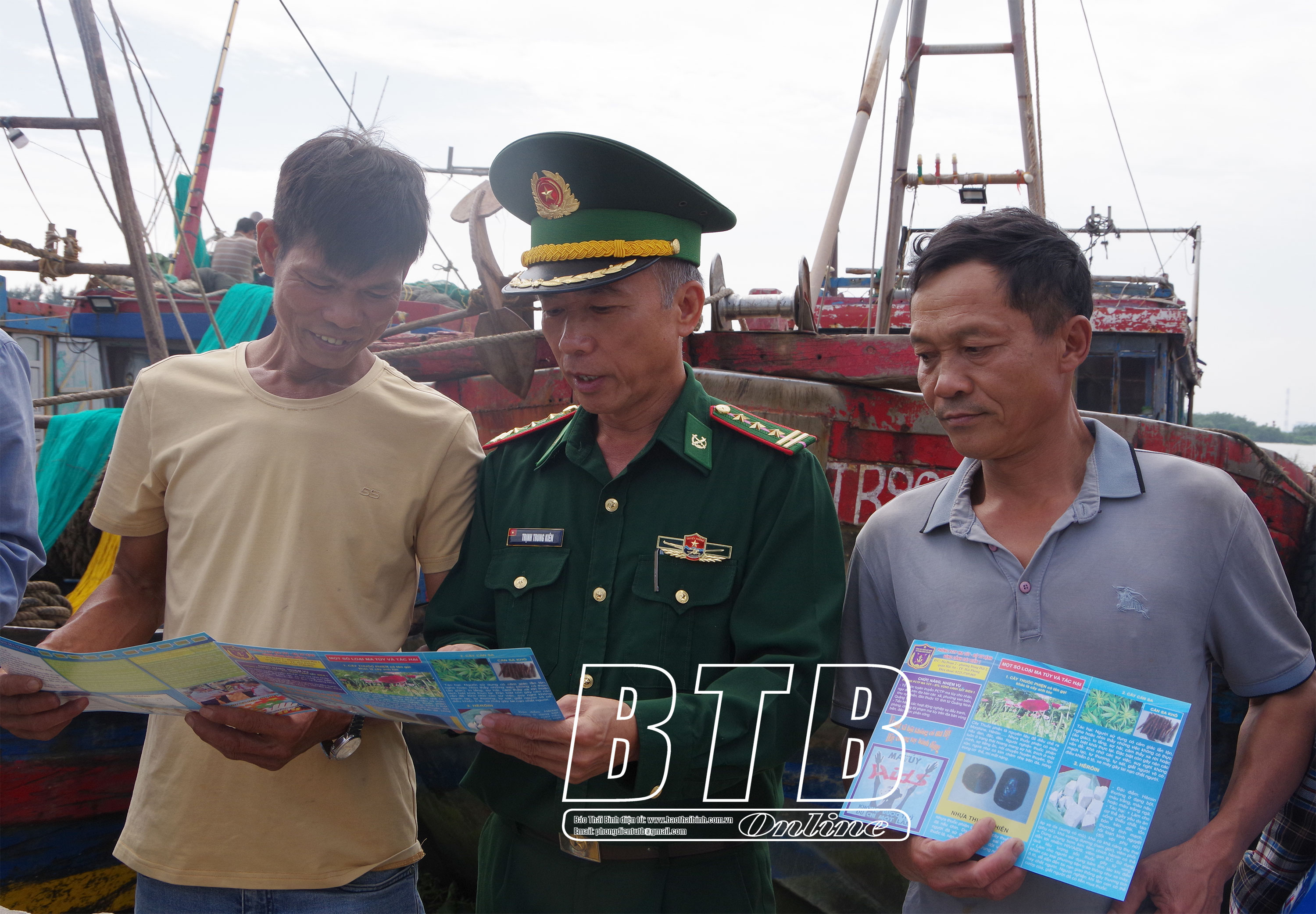Phát tờ rơi tuyên truyền cho ngư dân huyện Thái Thụy.