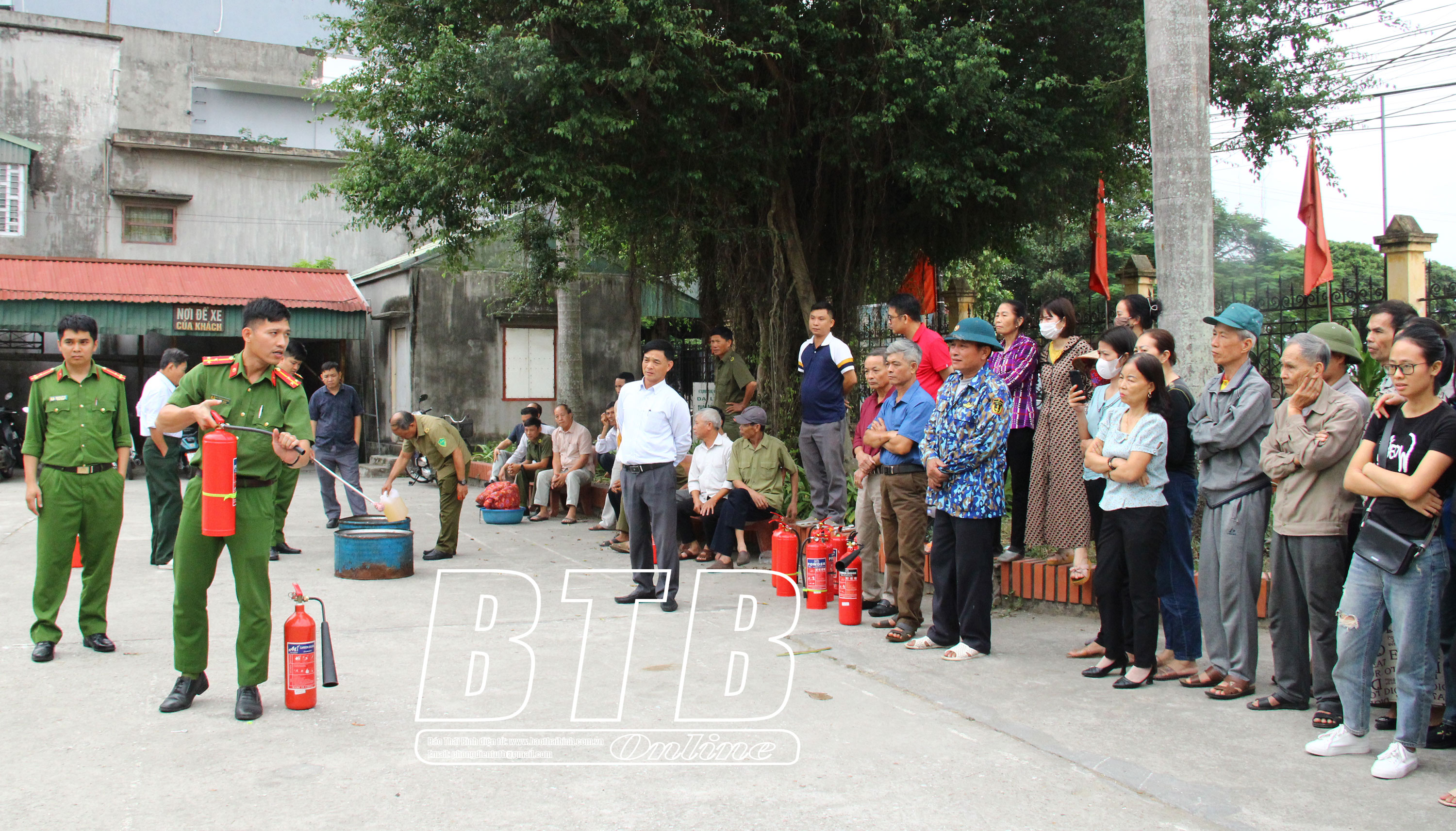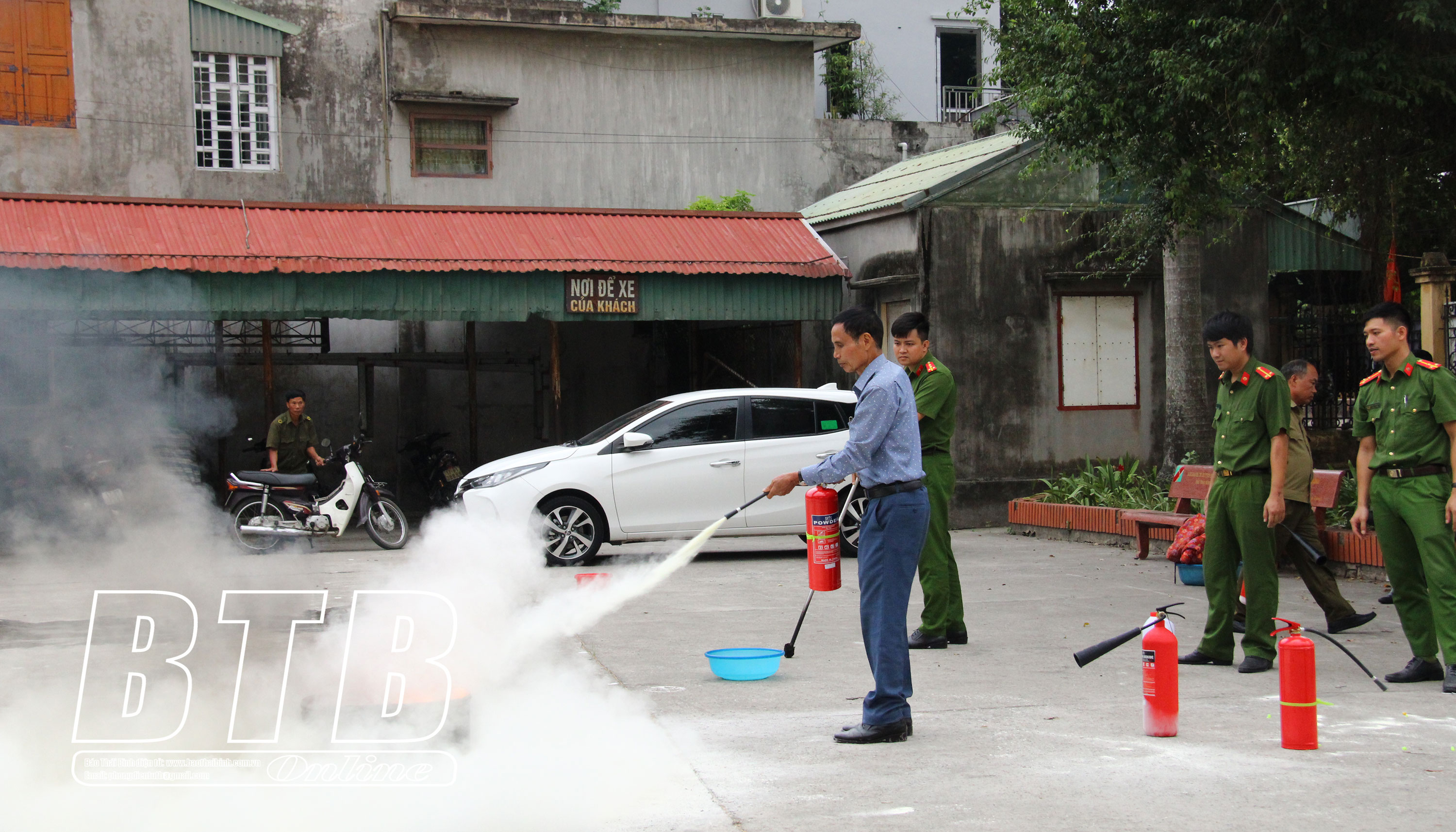 Công an huyện hướng dẫn cách sử dụng bình chữa cháy dập cháy.