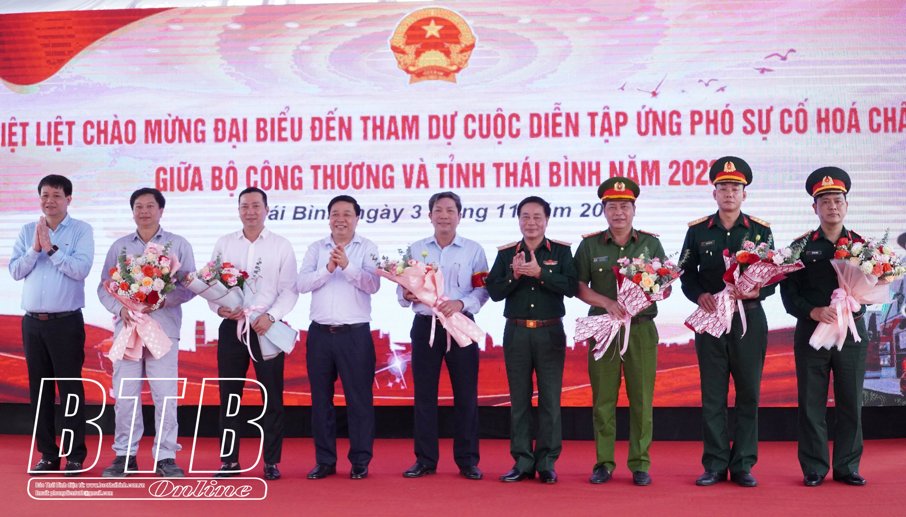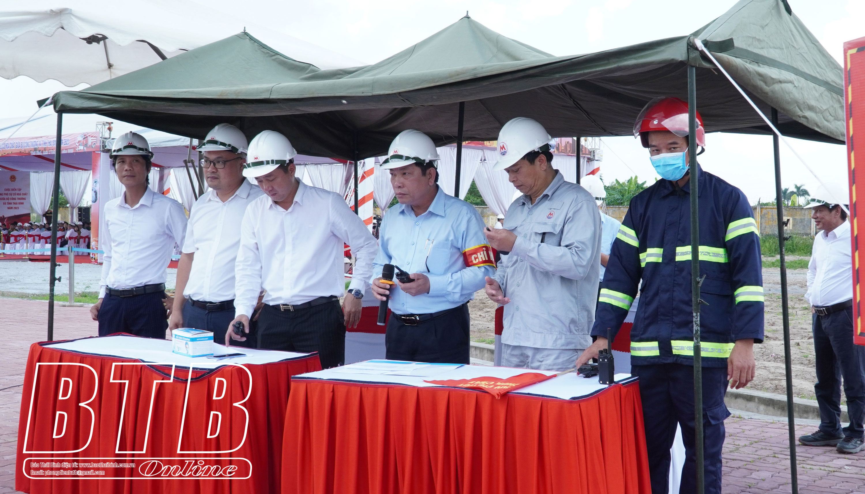 Các đại biểu đã chứng kiến cuộc diễn tập với sự phối hợp nhiều lực lượng gồm Bộ Công Thương, Quân khu 3, Sở Công Thương, Công an tỉnh, Bộ Chỉ huy Quân sự tỉnh, Sở Y tế, Sở Tài nguyên và Môi trường, cán bộ, người lao động Công ty Hóa chất mỏ Thái Bình - MICCO và chính quyền địa phương cùng nhau xử lý tình huống rò rỉ hóa chất tại Nhà máy sản xuất Amon Nitrat. Các lực lượng và phương tiện tập trung thực hành diễn tập các bước sơ tán, khoanh vùng sự cố, dập khí phát tán bằng nước, khắc phục sự cố, bảo vệ an ninh trật tự, tìm kiếm cứu nạn và cấp cứu y tế, kiểm tra, kiểm soát khí độc, tiêu độc cho phương tiện, trang thiết bị và khử nhiễm cho người.