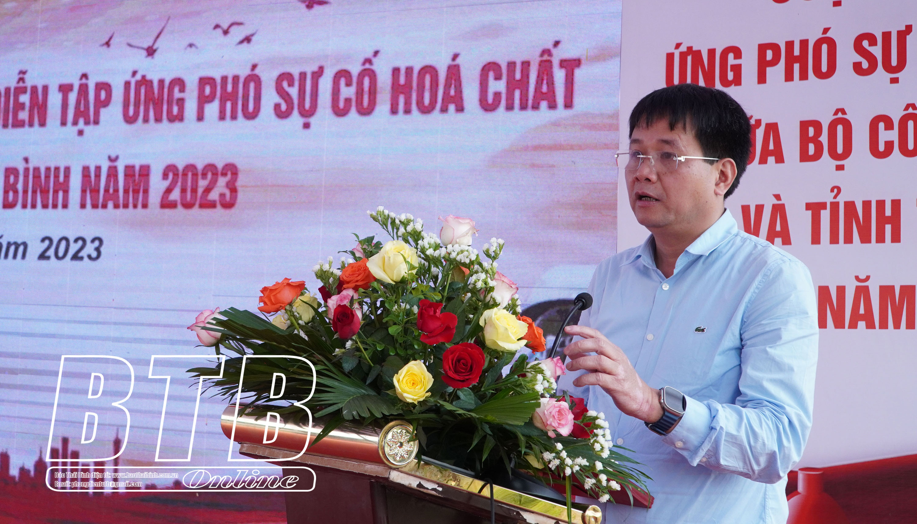 Lãnh đạo Công ty Hóa chất mỏ Thái Bình - MICCO phát biểu tại cuộc diễn tập.