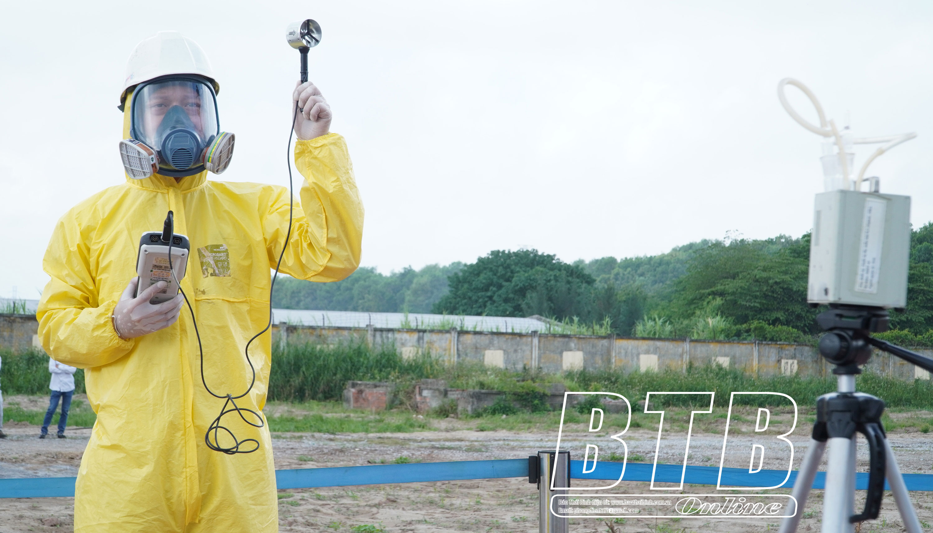 Lực lượng chức năng kiểm tra nồng độ hóa chất trong không khí tại hiện trường.