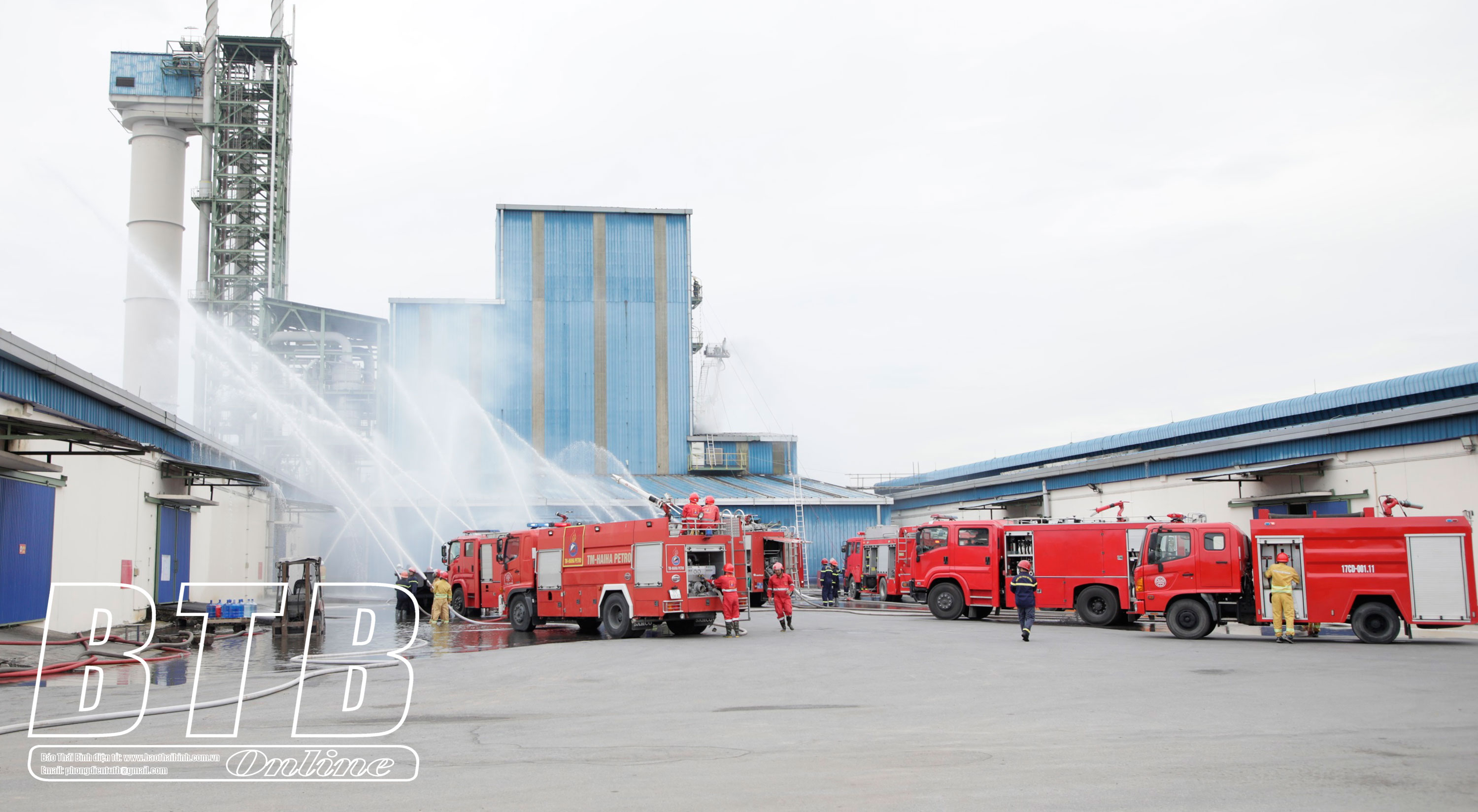 Diễn tập chữa cháy tại Nhà máy sản xuất Amon Nitrat thuộc Công ty Hóa chất mỏ Thái Bình – Micco, cụm công nghiệp Thái Thọ (Thái Thụy).