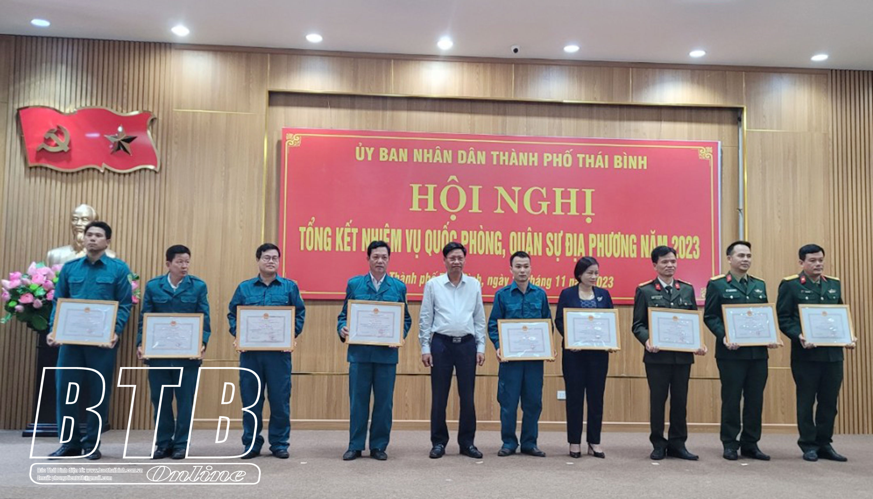 Tại hội nghị, UBND thành phố đã khen thưởng cho 9 tập thể, 10 cá nhân có thành tích xuất sắc trong thực hiện nhiệm vụ quốc phòng, quân sự địa phương năm 2023.