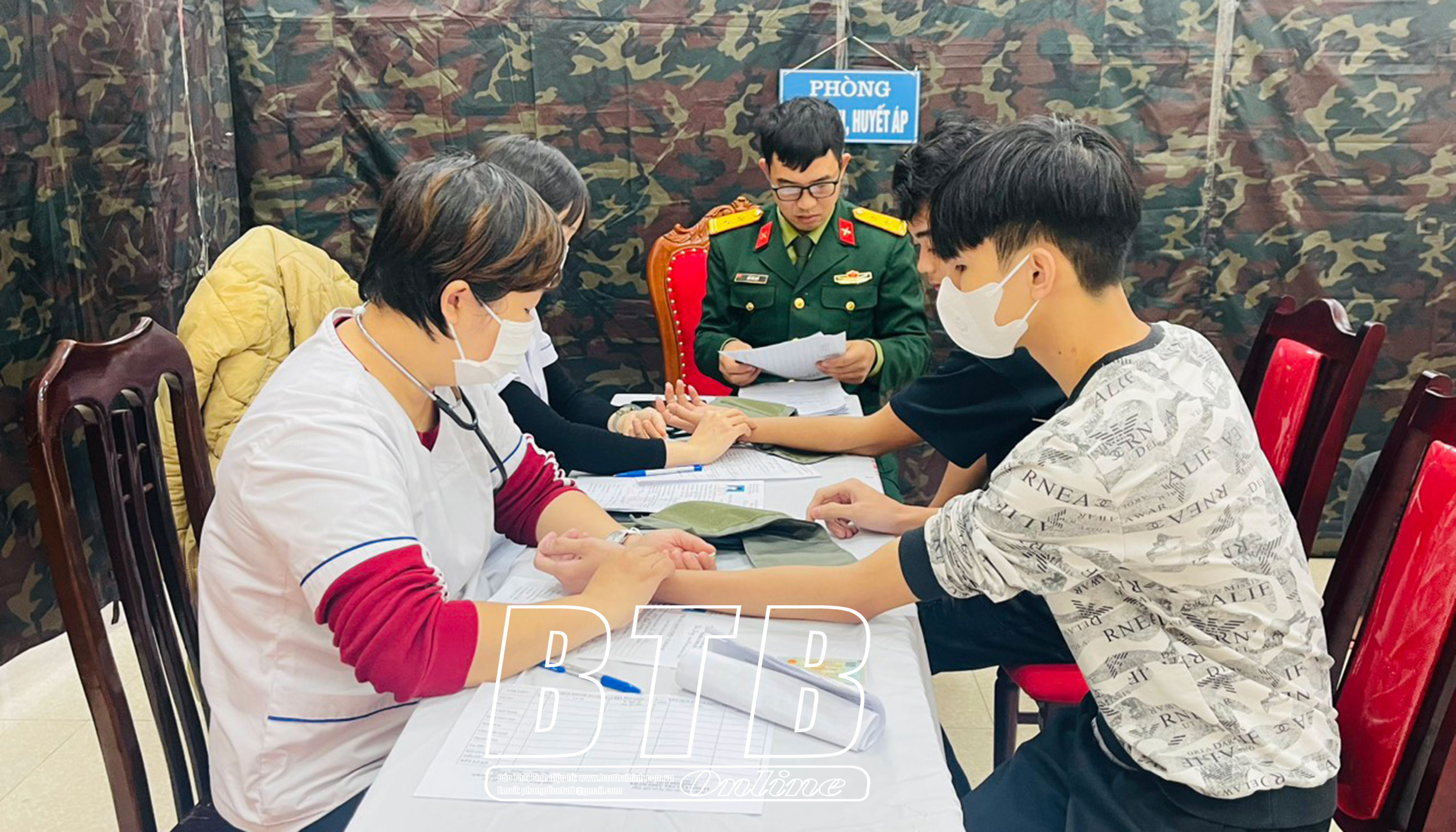 Các đồng chí lãnh đạo huyện Hưng Hà kiểm tra, động viên các thanh niên khám tuyển nghĩa vụ quân sự.