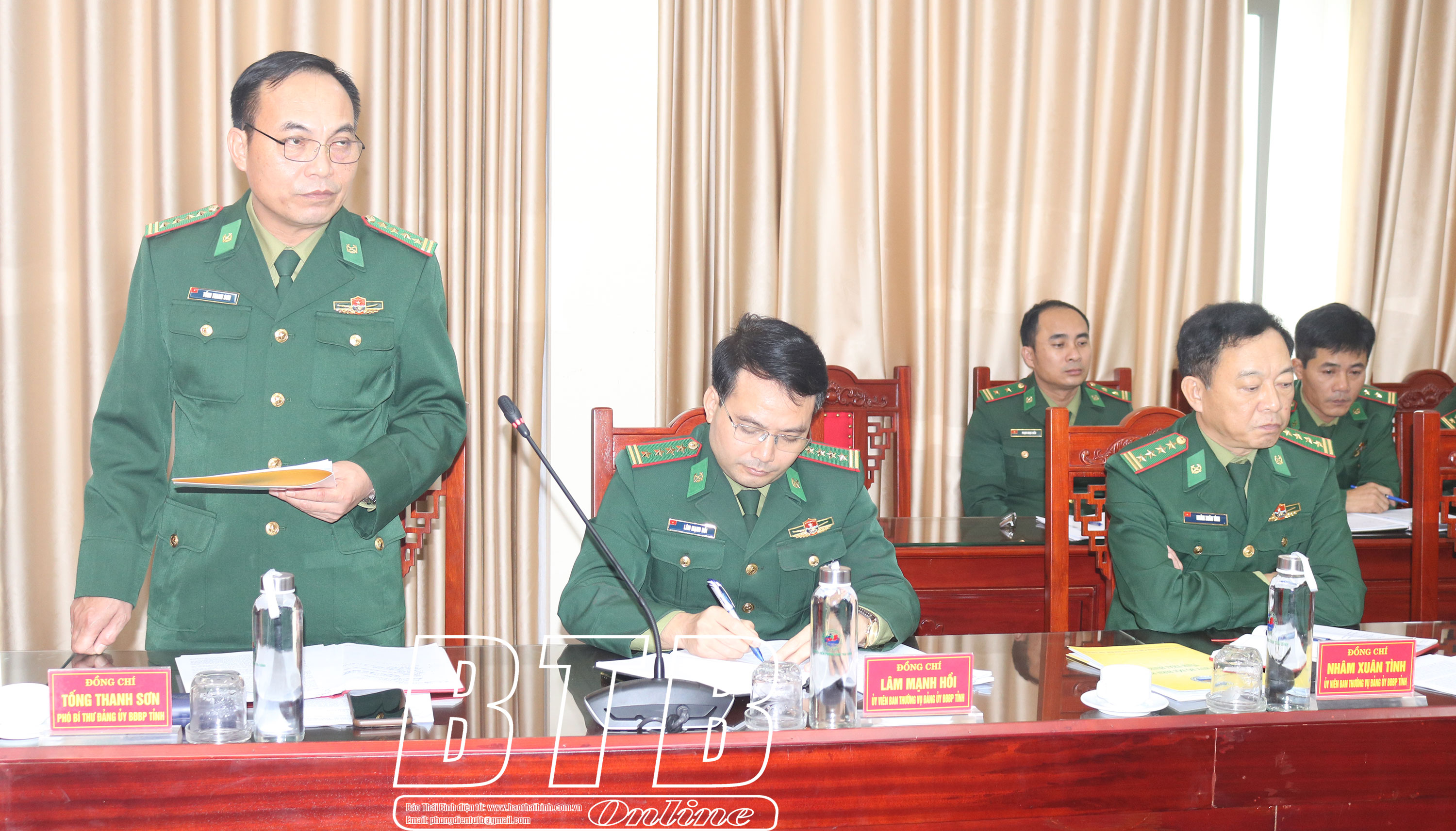Hiện nay, tỉnh Thái Bình đang triển khai nhiều công trình, dự án lớn trên địa bàn tỉnh, nằm trong khu vực hoạt động, bảo vệ của lực lượng BĐBP tỉnh, đồng chí đề nghị Bộ Chỉ huy BĐBP tỉnh cần cụ thể hóa các chương trình, hoạt động nhằm nâng cao ý thức, trách nhiệm của cán bộ, chiến sĩ trong việc chung sức cùng tỉnh bảo đảm an ninh an toàn cho các công trình, dự án được triển khai, góp phần thúc đẩy kinh tế - xã hội địa phương phát triển.
