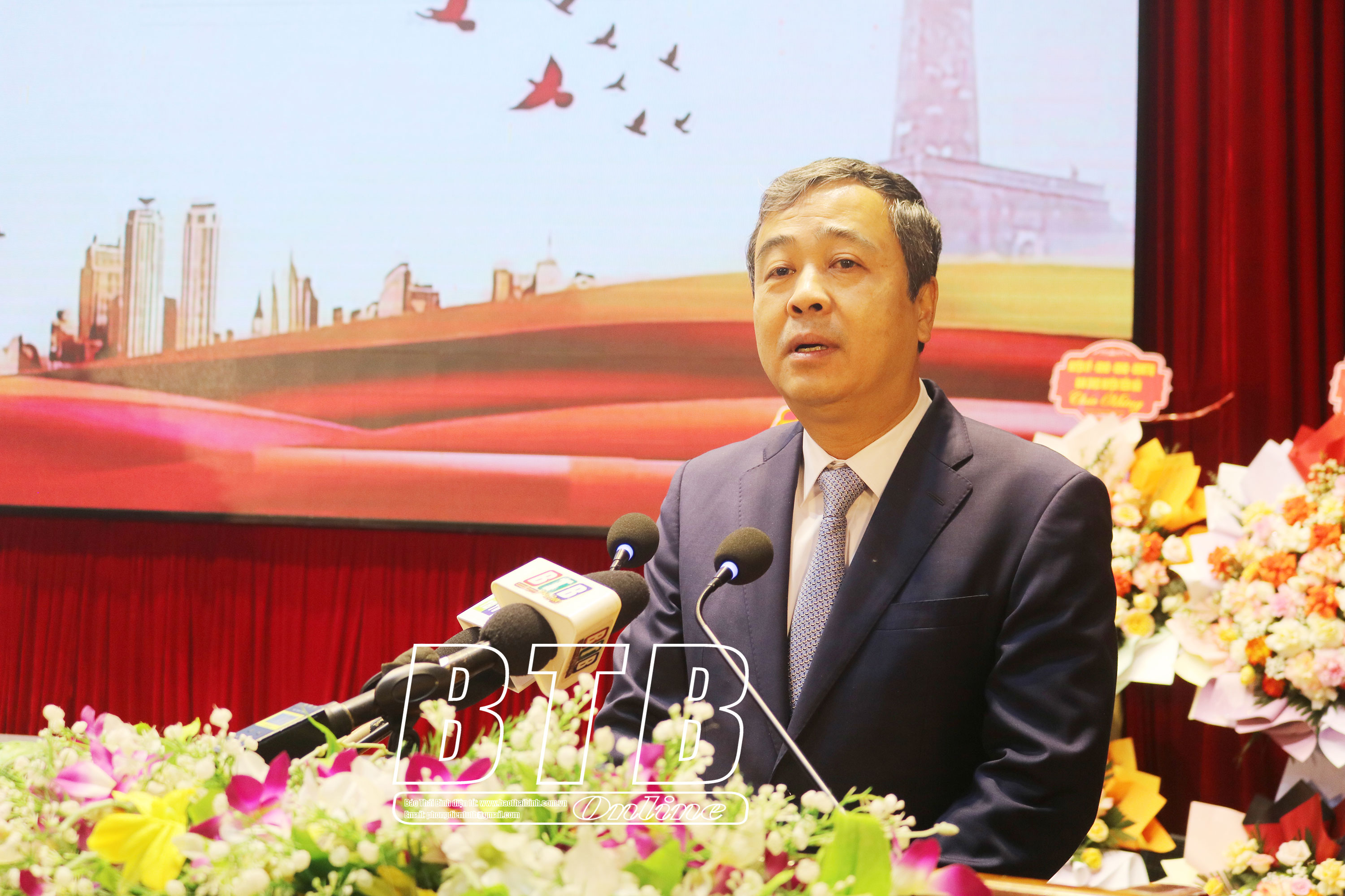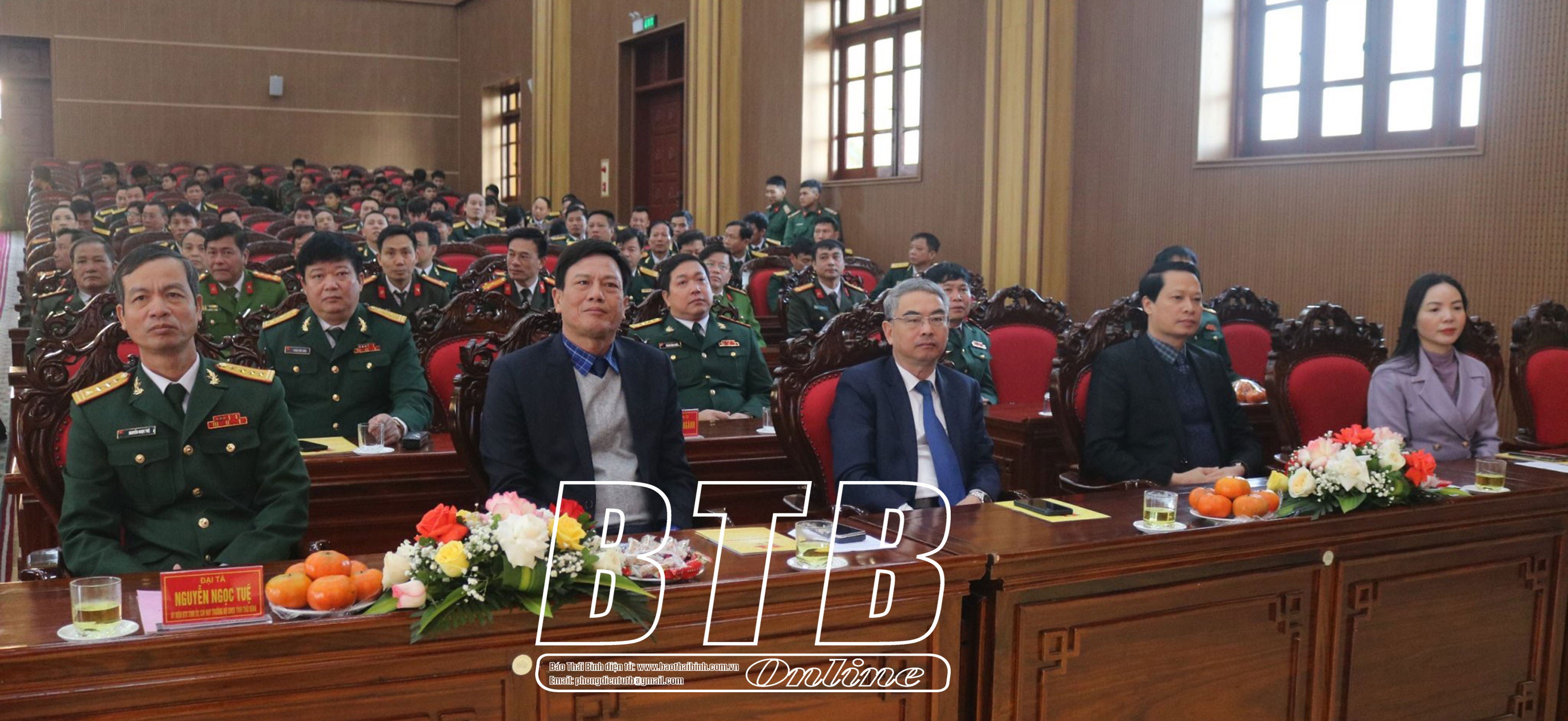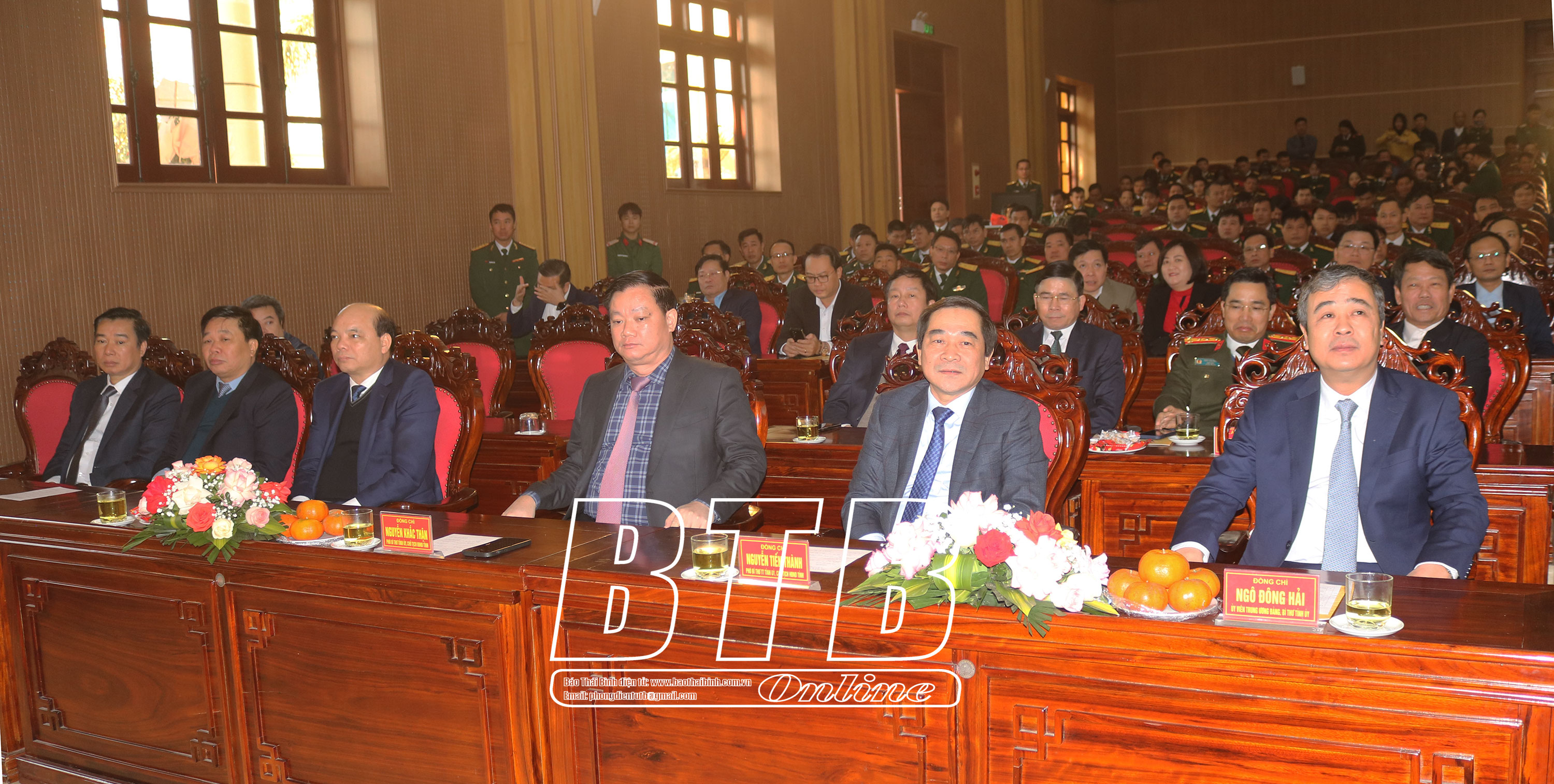 Thay mặt Tỉnh ủy, HĐND, UBND, Ủy ban MTTQ tỉnh, đồng chí Bí thư Tỉnh ủy đã tặng hoa và gửi lời chúc tốt đẹp nhất đến toàn thể cán bộ, chiến sĩ LLVT trong toàn tỉnh. Đồng chí nhấn mạnh: Tỉnh Thái Bình rất tự hào với truyền thống cách mạng vẻ vang, với bao thế hệ người con Thái Bình đã tình nguyện tòng quân lên đường bảo vệ Tổ quốc, chung sức cùng quân và dân cả nước giành lại độc lập, tự do và hạnh phúc cho nhân dân. Những năm qua, LLVT tỉnh Thái Bình đã kế thừa và phát huy tốt truyền thống vẻ vang đó, không ngừng rèn luyện, cống hiến xây dựng địa phương phát triển. Năm 2023, với sự nỗ lực của Đảng bộ, chính quyền, nhân dân trong tỉnh, sự đóng góp tích cực của LLVT tỉnh, Thái Bình tiếp tục đạt được nhiều thành tựu trong phát triển kinh tế - xã hội; trong thành tích chung đó, có sự đóng góp quan trọng của LLVT Thái Bình nói chung, cán bộ, chiến sĩ Bộ CHQS tỉnh nói riêng.