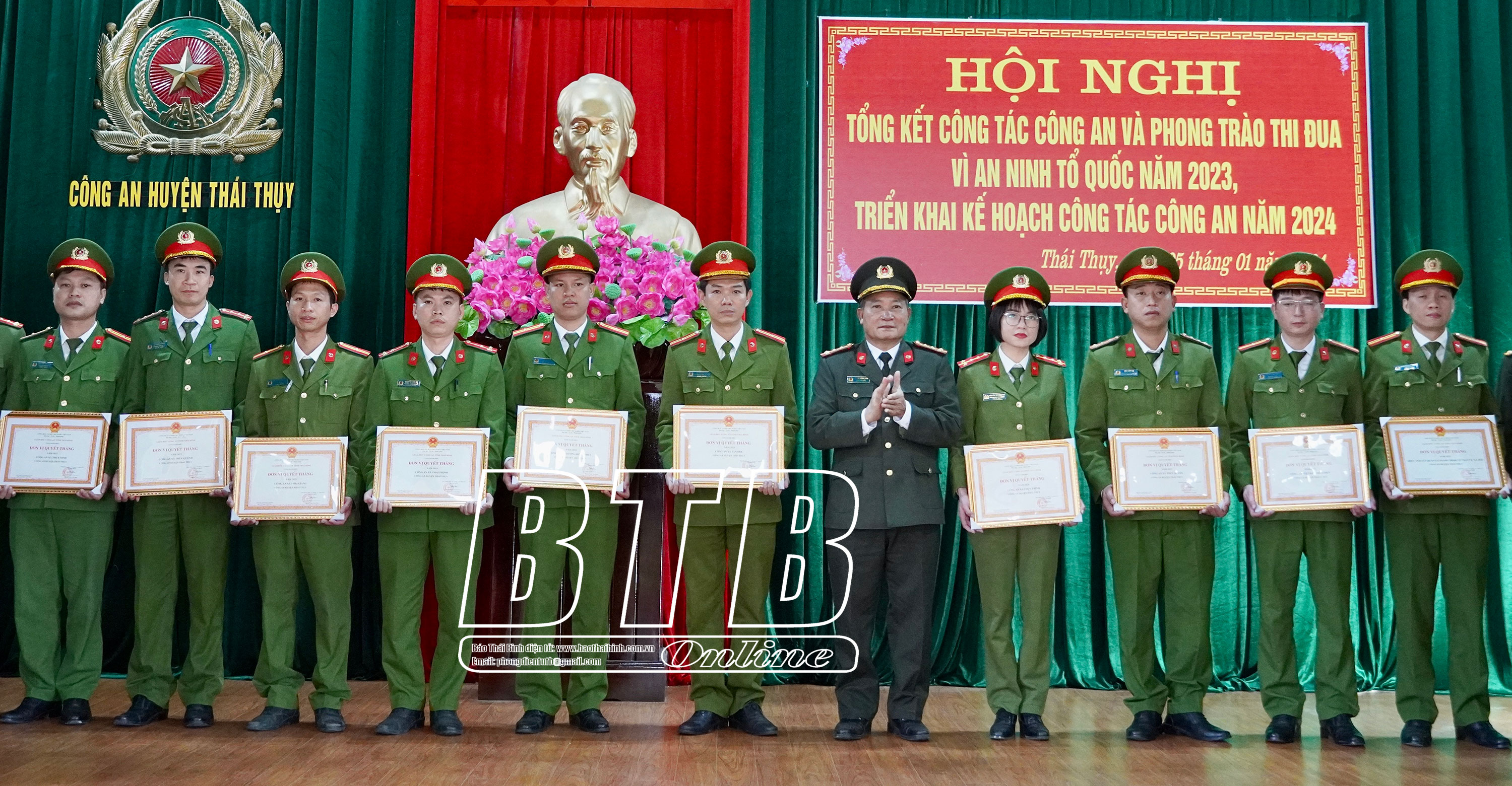 Phát động phong trào thi đua "Vì an ninh Tổ quốc" năm 2024 Công an huyện Thái Thụy tập trung thực hiện đồng bộ các biện pháp bảo đảm ANTT, giữ vững an ninh chính trị, trật tự an toàn xã hội; quyết liệt triển khai các phương án, kế hoạch, biện pháp nghiệp vụ phòng ngừa, đấu tranh, tấn công, trấn áp, kiềm chế, kéo giảm tội phạm; thực hiện tốt công tác quản lý nhà nước về ANTT, triển khai đợt cao điểm thực hiện nghiêm Luật số 14/2017/QH14 của Quốc hội về quản lý, sử dụng vũ khí, vật liệu nổ, công cụ hỗ trợ và Nghị định số 137/2020/NĐ-CP của Chính phủ về quản lý, sử dụng pháo trong dịp tết Nguyên đán Giáp Thìn 2024.