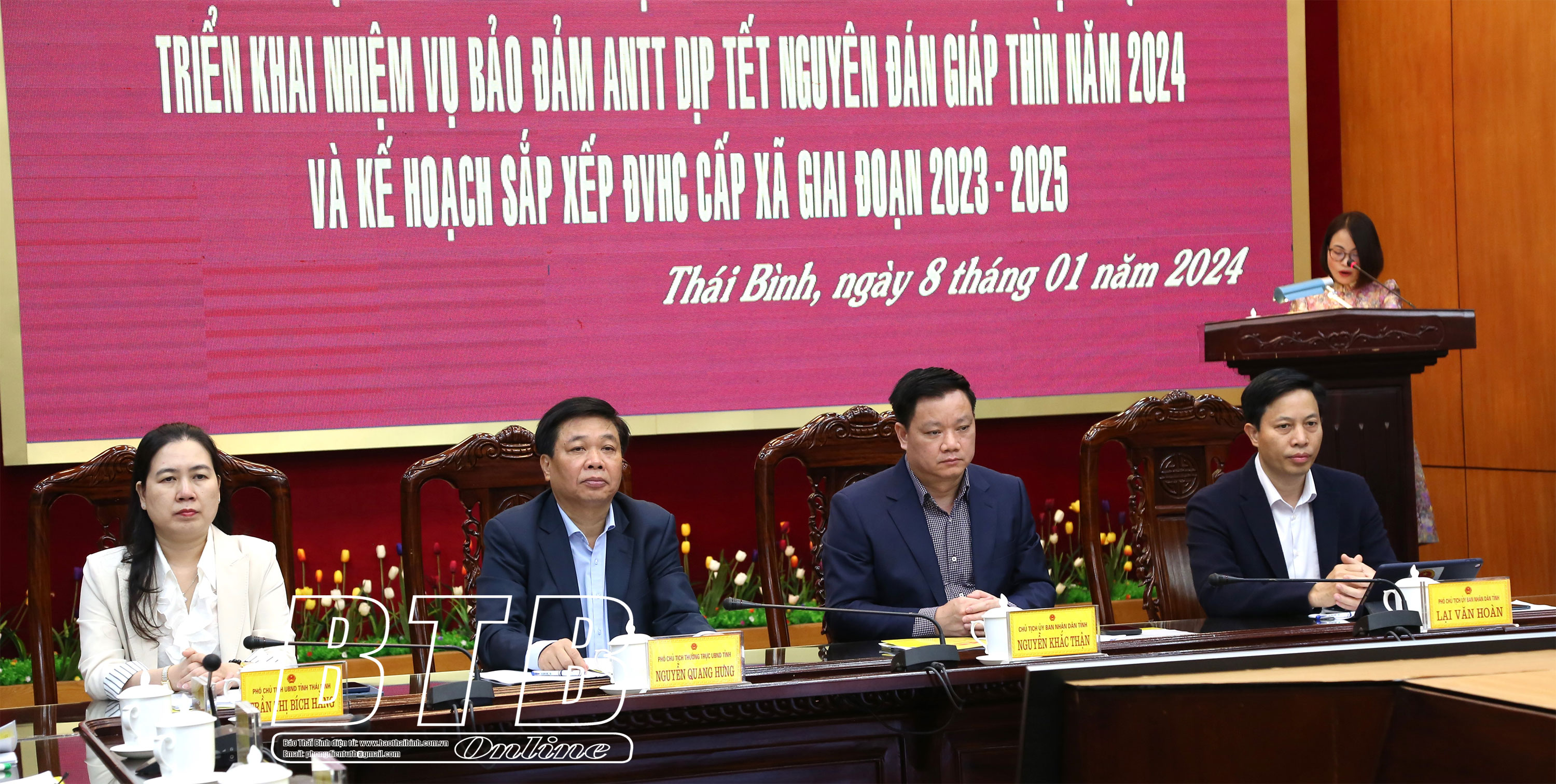Hội nghị đã thông qua Kế hoạch số 210 của Tỉnh ủy thực hiện Kết luận số 48 của Bộ Chính trị ngày 30/1/2023 về tiếp tục thực hiện sắp xếp ĐVHC cấp huyện, cấp xã giai đoạn 2023 – 2030 và Kế hoạch số 176 của UBND tỉnh thực hiện sắp xếp ĐVHC cấp xã trên địa bàn tỉnh Thái Bình giai đoạn 2023 – 2025. Theo đó, giai đoạn 2023 – 2025, tỉnh Thái Bình sẽ sắp xếp 28 ĐVHC cấp xã để thành lập 10 ĐVHC cấp xã mới (giảm 18 ĐVHC cấp xã so với hiện nay). Tỉnh khuyến khích các địa phương chủ động đề xuất sắp xếp ĐVHC phù hợp với thực tiễn địa phương để giảm số lượng, tăng quy mô của từng ĐVHC, giải quyết các vấn đề còn bất hợp lý về phân định địa giới ĐVHC, tinh gọn tổ chức bộ máy và tinh giản biên chế, tạo thuận lợi cho công tác quản lý Nhà nước, hoạt động của các cơ quan, tổ chức, đơn vị, doanh nghiệp và đời sống của nhân dân.