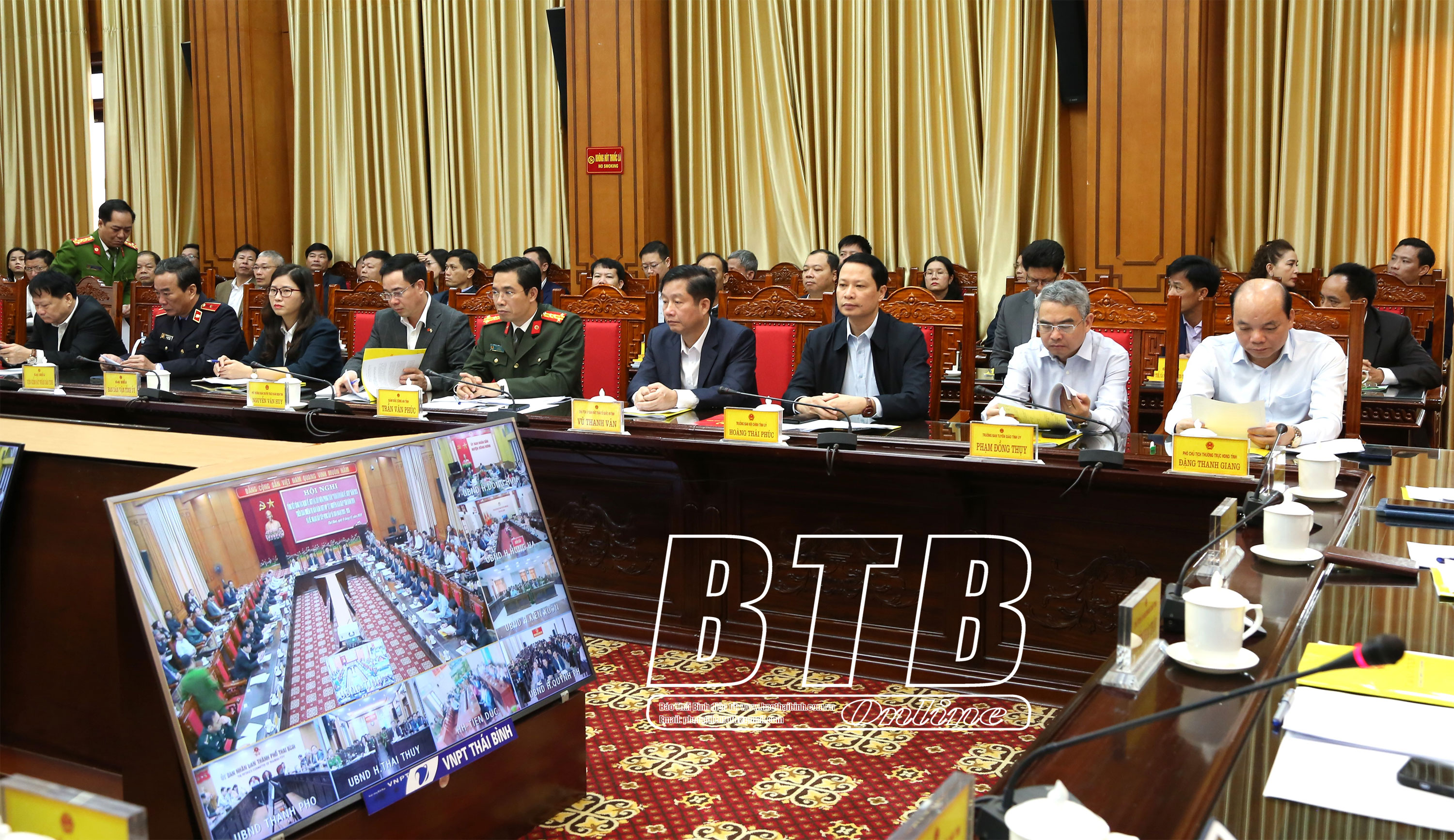 Tại hội nghị cũng đã thông qua Chỉ thị số 26 của Ban Thường vụ Tỉnh ủy về việc tổ chức tết Nguyên đán Giáp Thìn năm 2024; các kế hoạch của UBND tỉnh về bảo đảm trật tự, an toàn giao thông trên địa bàn tỉnh Thái Bình năm 2024; kế hoạch mở đợt cao điểm thực hiện Luật Quản lý, sử dụng vũ khí, vật liệu nổ, công cụ hỗ trợ, Nghị định số 137 của Chính phủ về quản lý và sử dụng pháo tháng cuối năm 2023 và tết Nguyên đán Giáp Thìn năm 2024; Kế hoạch phát động phong trào “Toàn dân bảo vệ ANTQ” năm 2024...