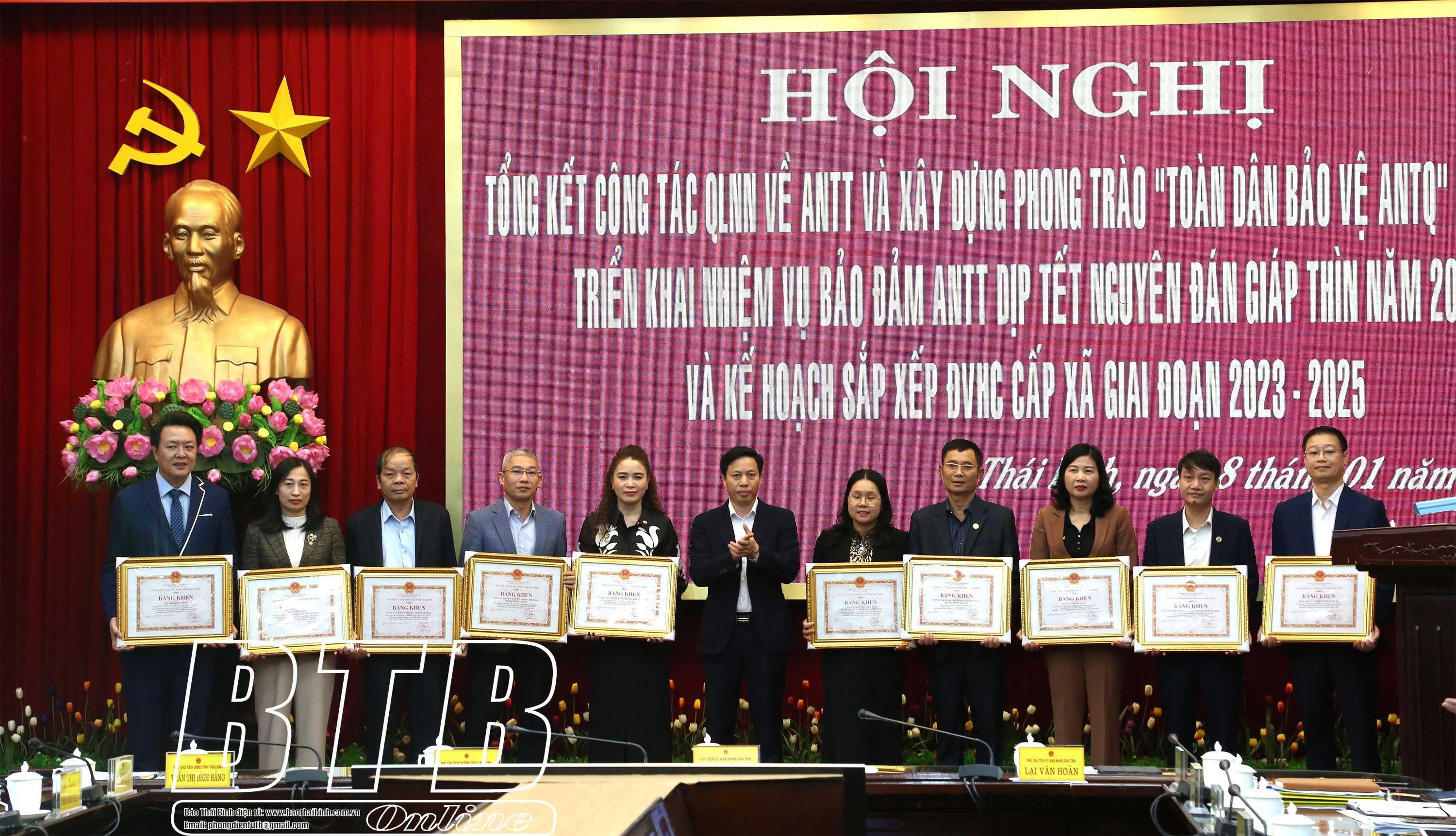 Tại hội nghị, 26 tập thể, cá nhân đạt thành tích trong thực hiện nhiệm vụ bảo đảm ANTT và xây dựng phong trào “Toàn dân bảo vệ ANTQ” được tuyên dương, khen thưởng.