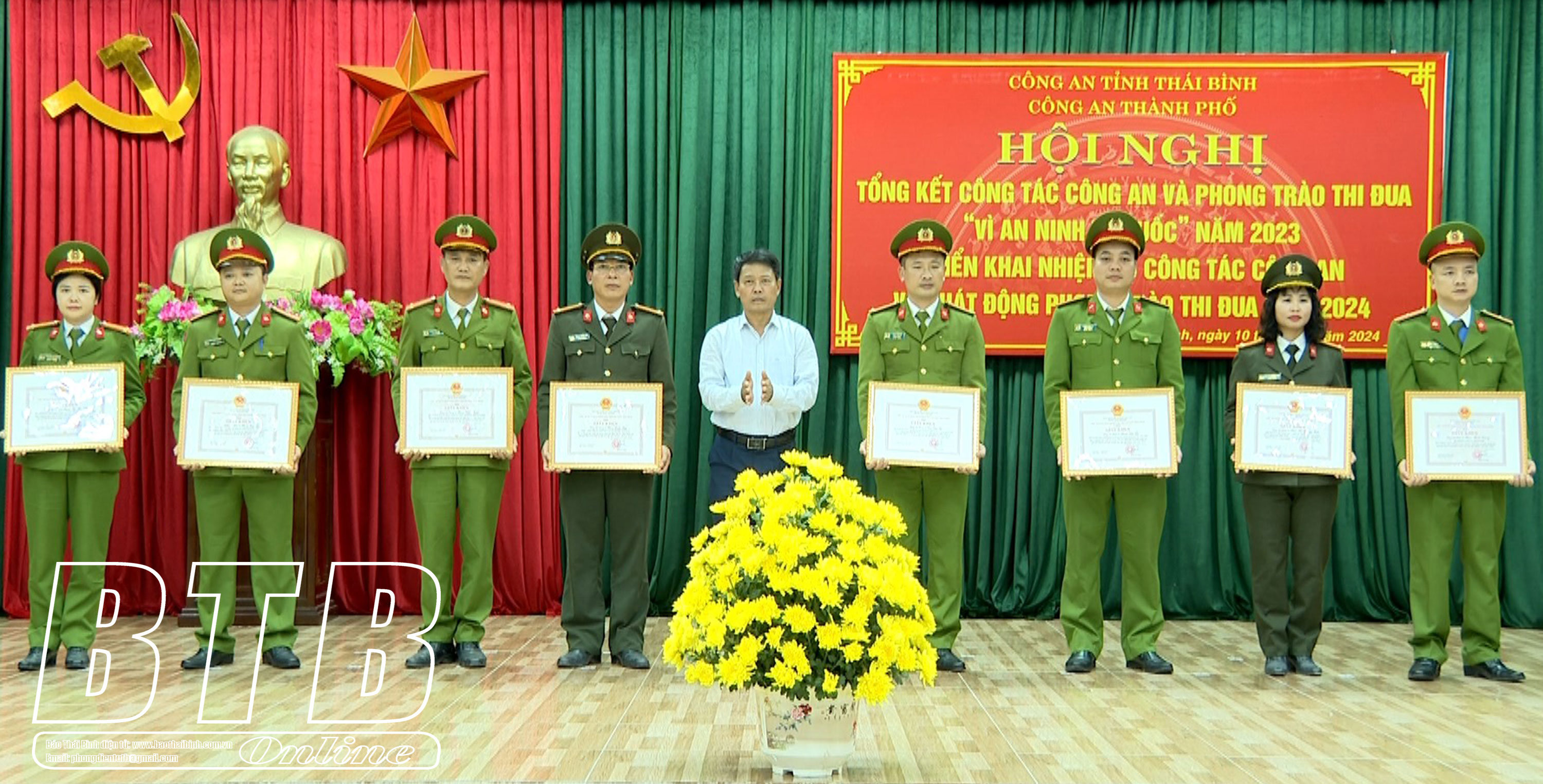 Năm 2024, Công an thành phố tiếp tục đổi mới, nâng cao chất lượng, hiệu quả các mặt công tác; đẩy mạnh xã hội hóa nhiệm vụ bảo vệ an ninh trật tự, huy động sức mạnh của cả hệ thống chính trị và vai trò nòng cốt của lực lượng công an; giữ vững an ninh trật tự, bảo vệ tuyệt đối an toàn các sự kiện chính trị quan trọng của đất nước và của tỉnh. Nâng cao năng lực lãnh đạo, sức chiến đấu của các tổ chức Đảng và đội ngũ cán bộ, đảng viên; xây dựng Đảng bộ, xây dựng lực lượng Công an trong sạch, vững mạnh, ngang tầm yêu cầu nhiệm vụ mới với khẩu hiệu hành động “Xây dựng lực lượng Công an thành phố Thái Bình thật sự trong sạch, vững mạnh, chính quy, tinh nhuệ, hiện đại".