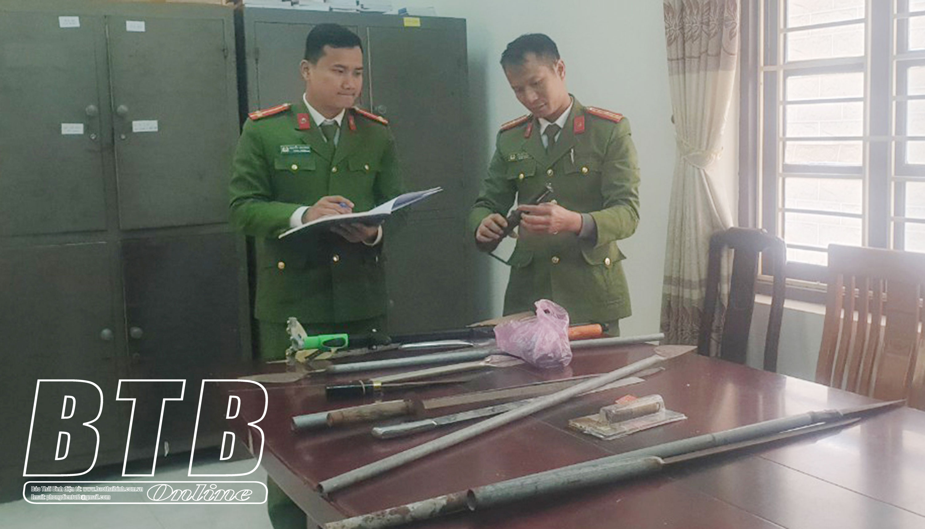 Công an huyện Quỳnh Phụ kiểm kê vũ khí, vật liệu nổ, công cụ hỗ trợ do người dân tự nguyện giao nộp.