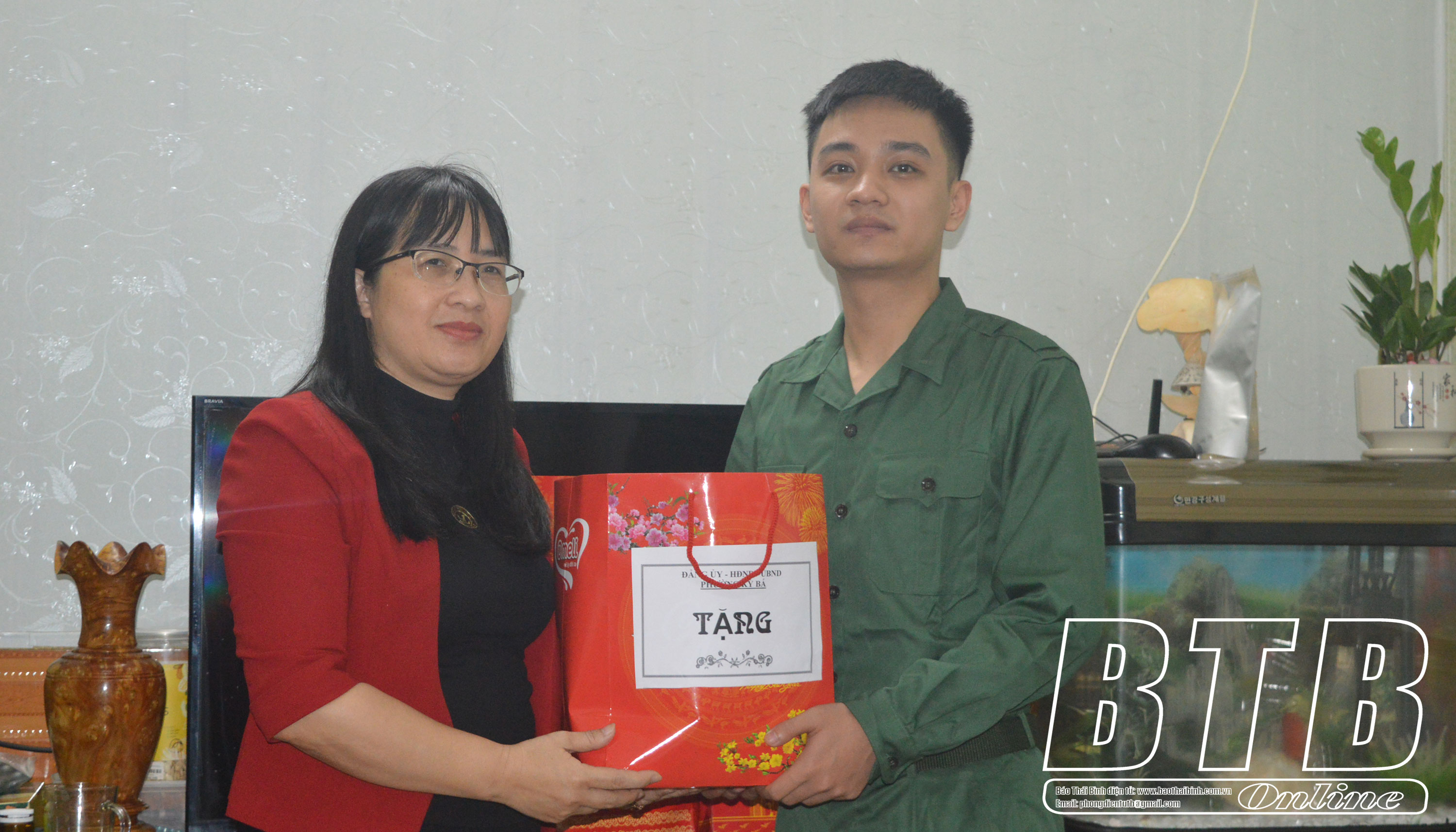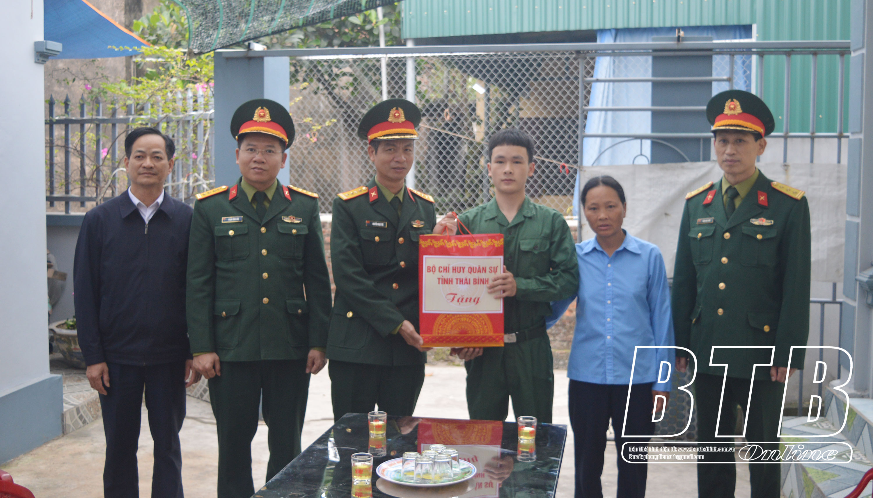 Đồng chí Chỉ huy trưởng Bộ CHQS tỉnh đã đến thăm, động viên và trao quà cho các tân binh: Nguyễn Quế Nam, tổ 10, phường Trần Hưng Đạo; Trần Đức Khánh, tổ 17, phường Kỳ Bá và Phạm Quang Nhật, thôn Tây Hạ, xã Vũ Phúc, thành phố Thái Bình.