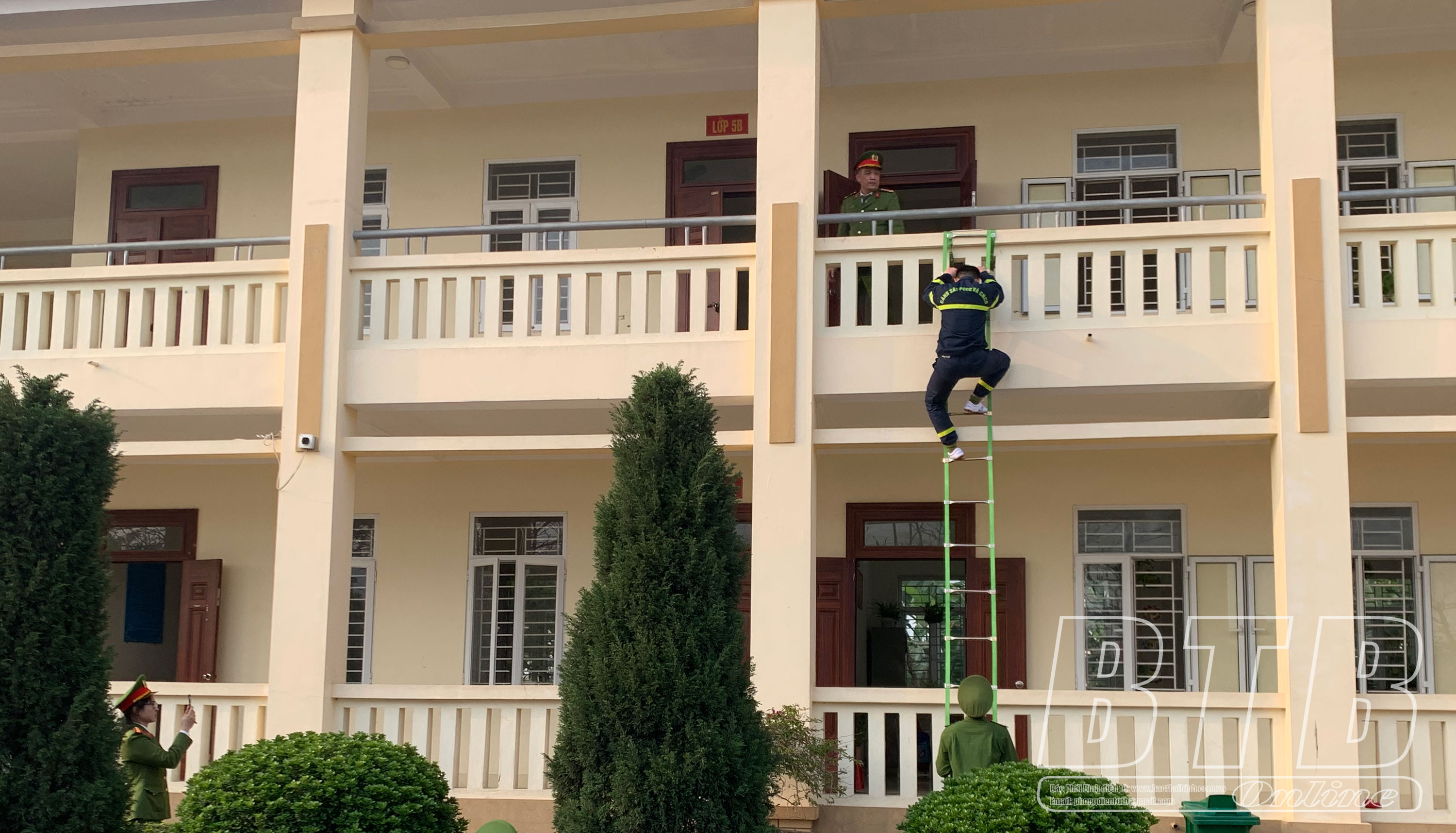 Thực hành thoát nạn bằng thang dây khi có cháy xảy ra.