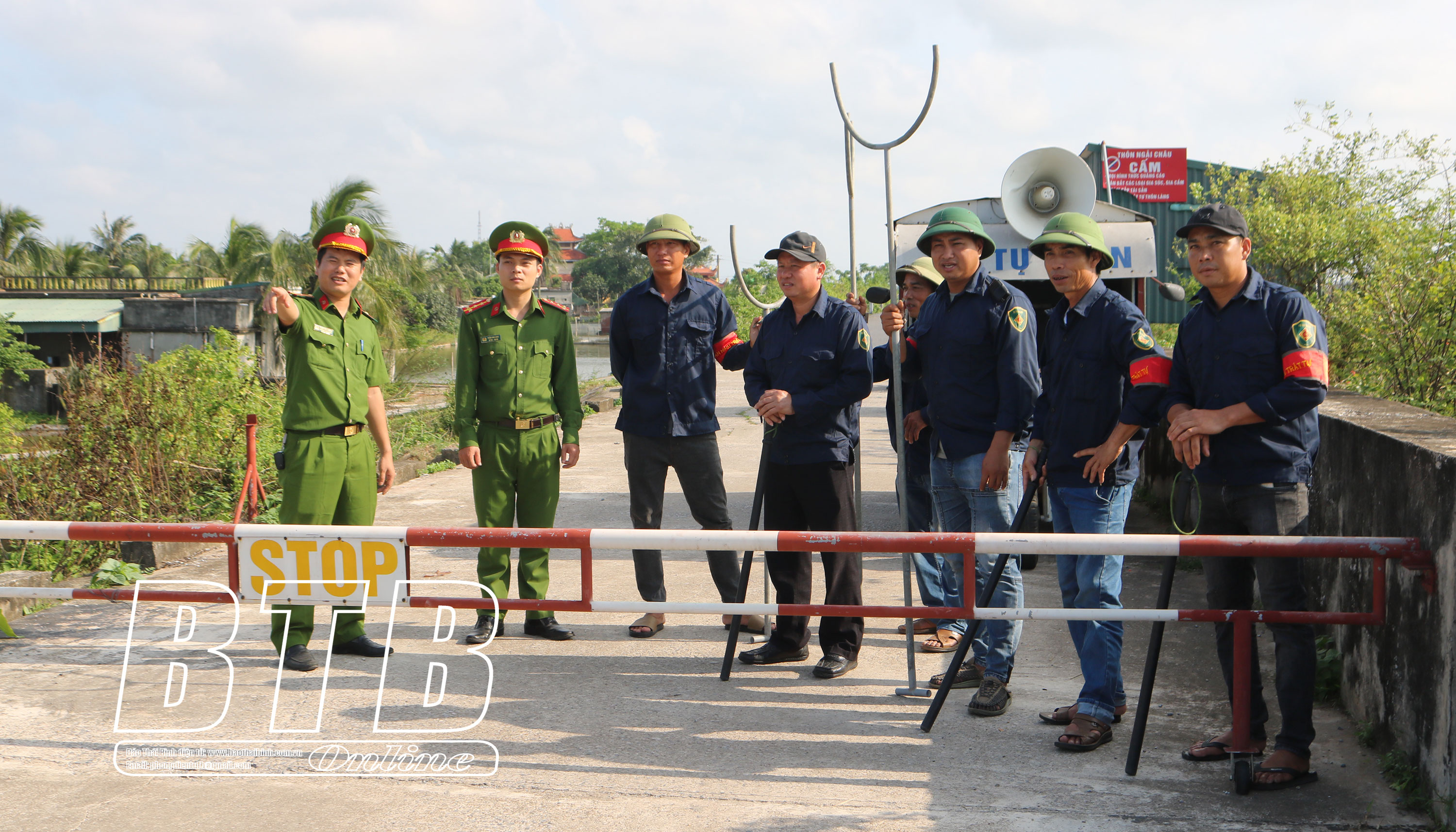Công an xã Đông Minh phối hợp với tổ tự quản an ninh trật tự thôn Ngải Châu phòng, chống tội phạm trên tuyến đê biển.