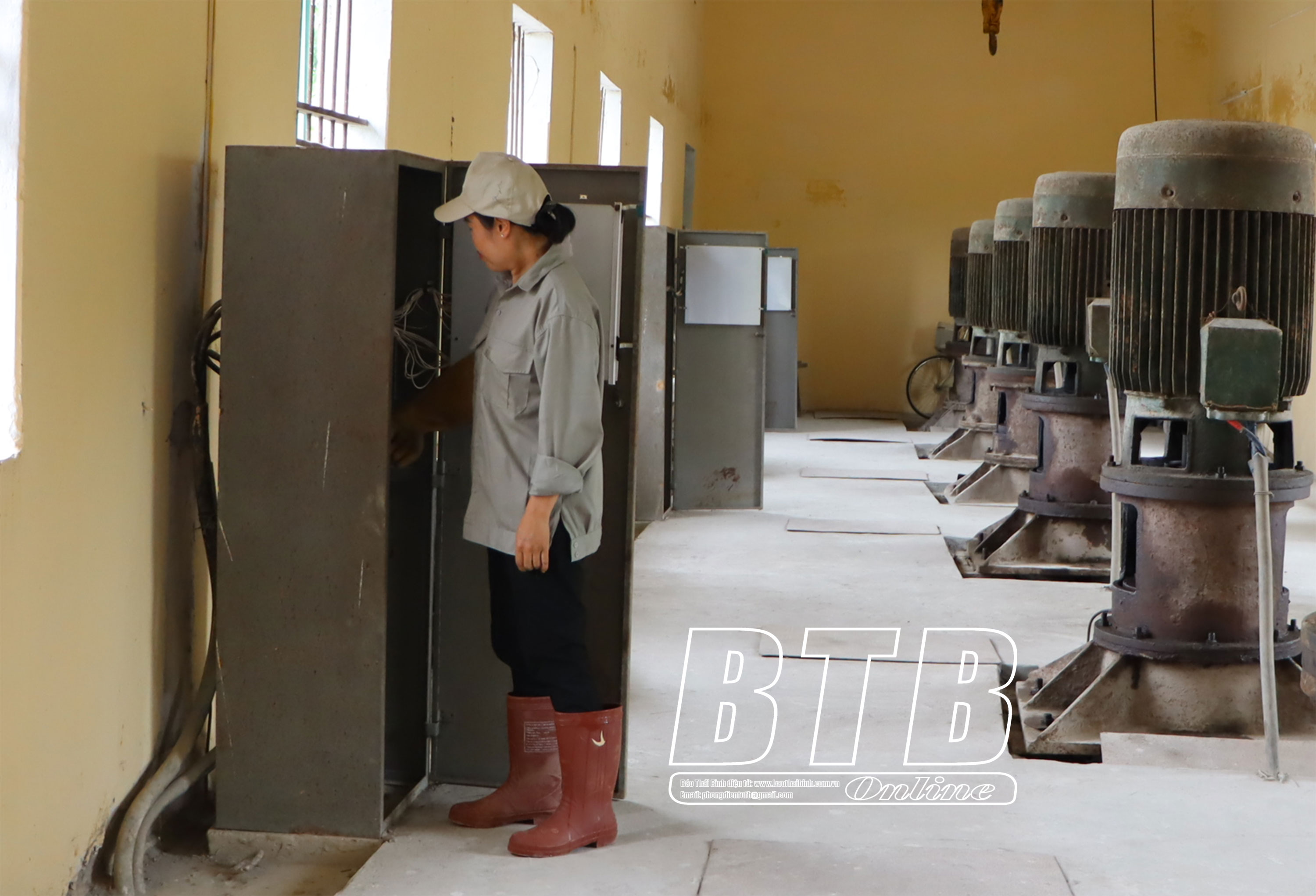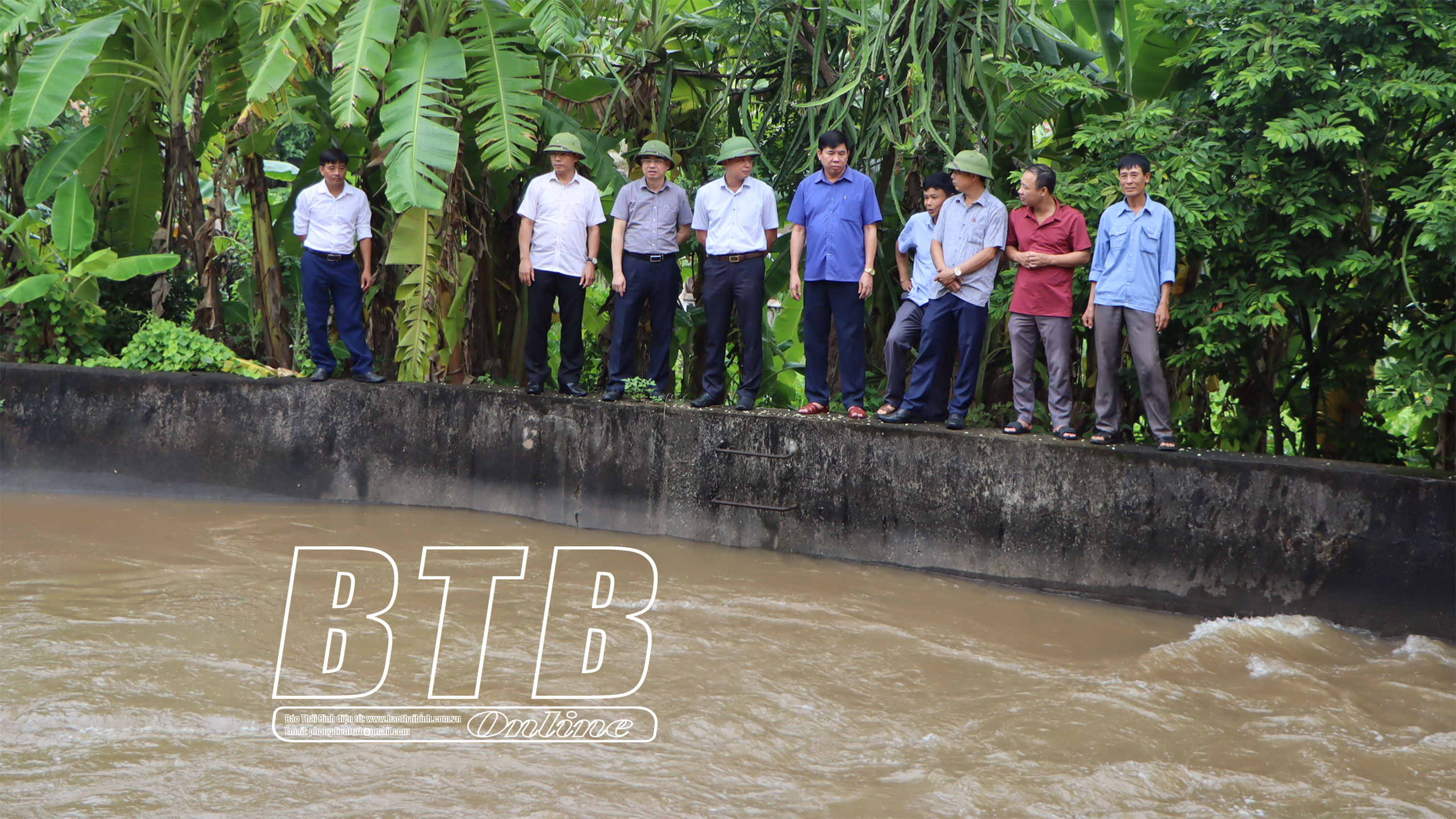 Đồng chí Trưởng ban Tuyên giáo Tỉnh ủy kiểm tra công tác tiêu thoát nước tại trạm bơm An Quốc, xã Quốc Tuấn.