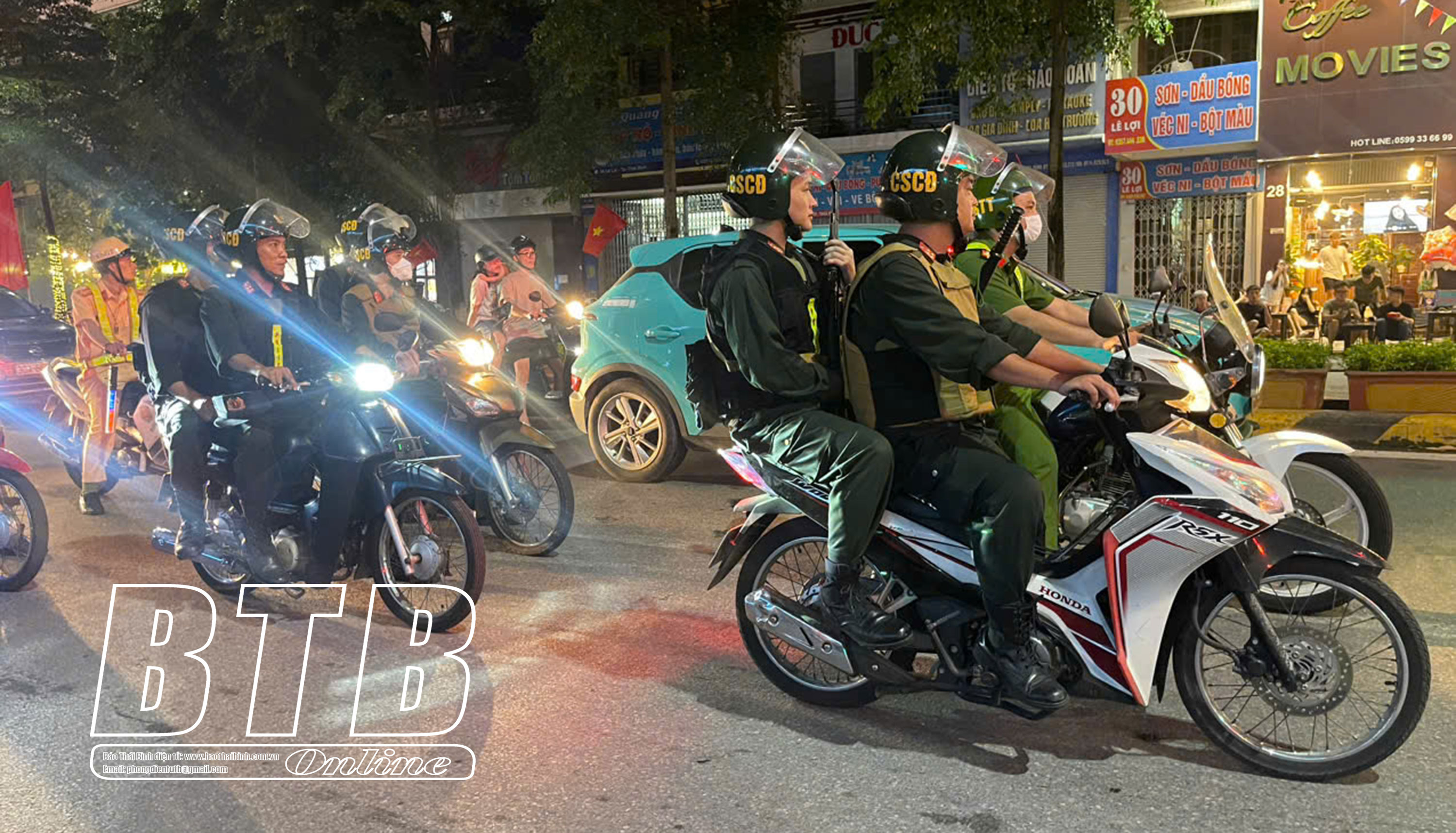 Lực lượng Cảnh sát cơ động tuần tra kiểm soát bảo đảm an ninh trật tự trên địa bàn thành phố Thái Bình.
