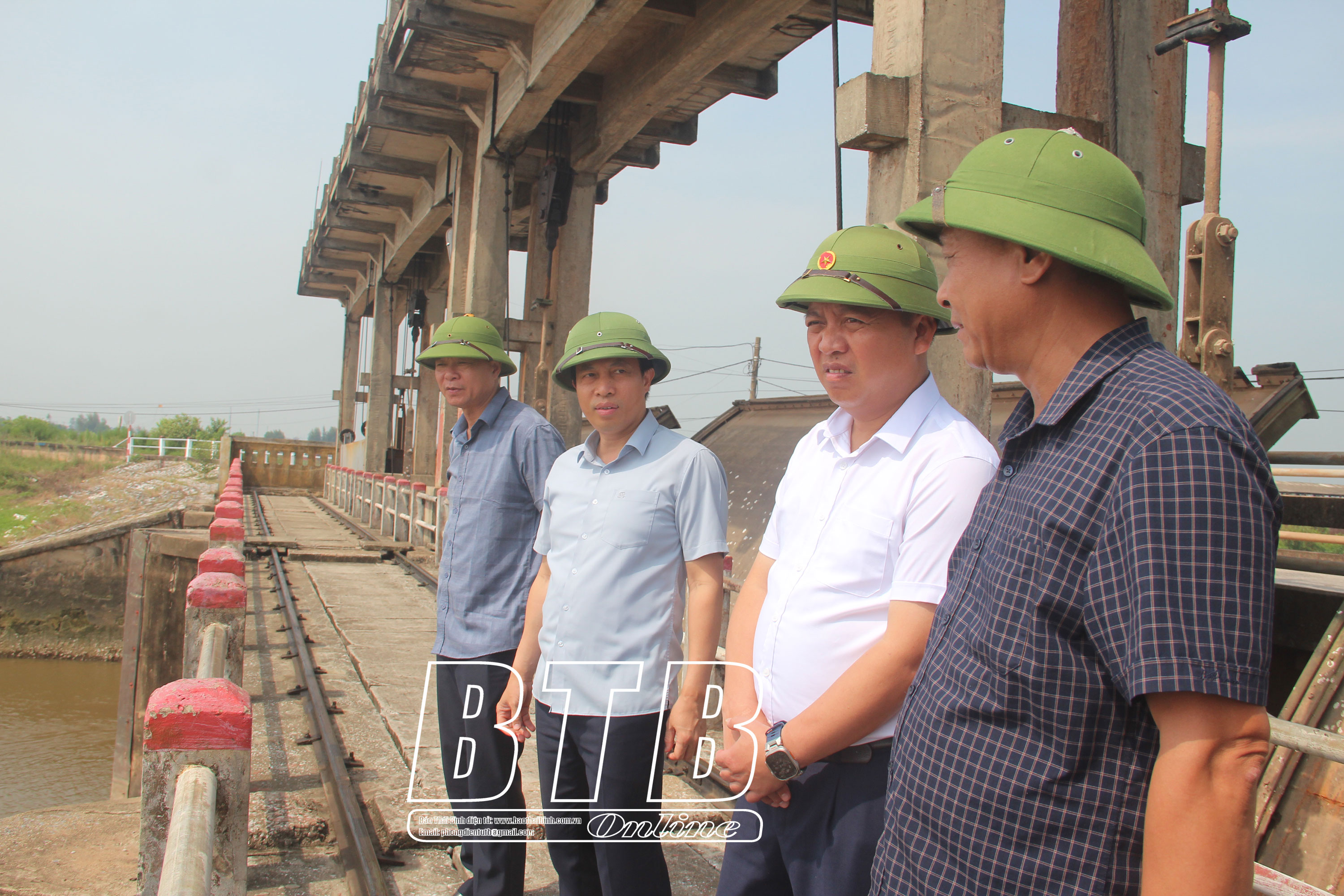 Đồng chí Lại Văn Hoàn, Tỉnh ủy viên, Phó Chủ tịch UBND tỉnh, Phó Trưởng ban thường trực Ban Chỉ huy PCTT và TKCN tỉnh kiểm tra công tác ứng phó với bão số 3 tại cống Lân I (Tiền Hải).