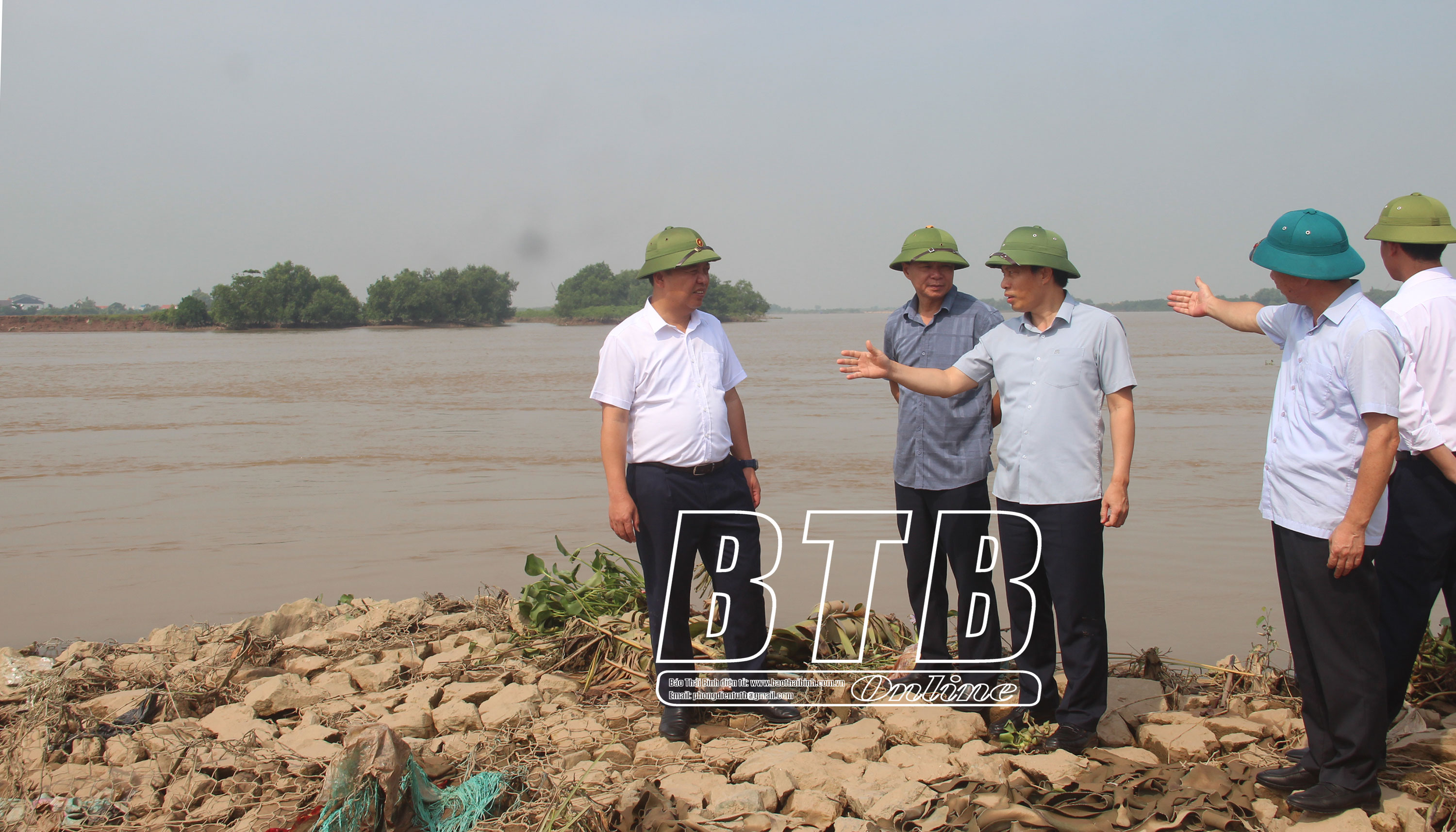 Đồng chí Phó Chủ tịch UBND tỉnh đã kiểm tra tại các trọng điểm xung yếu trên tuyến đê biển thuộc huyện Tiền Hải gồm: cống Tân Lập, kè Nam Hồng, cống Lân I.