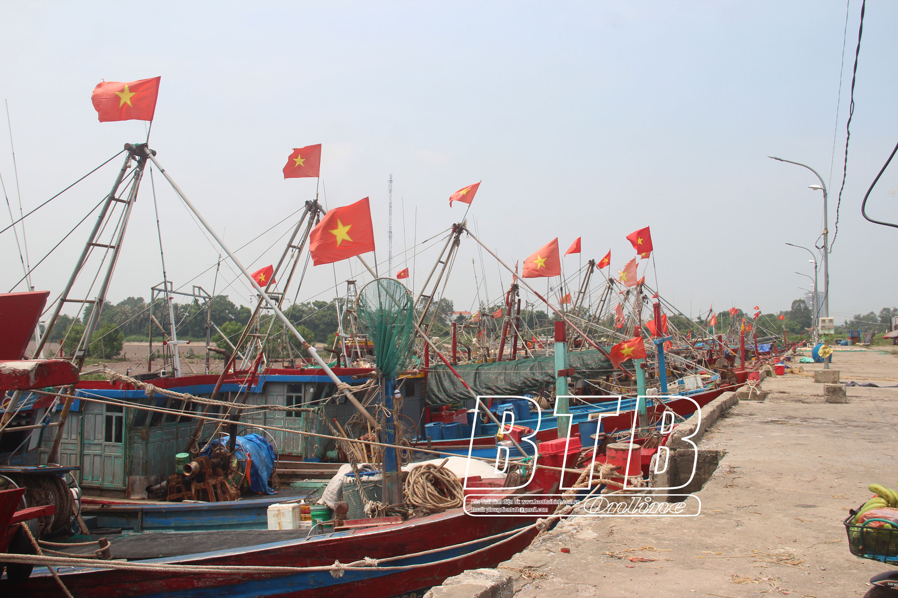 Các phương tiện tàu, thuyền neo đậu tại cảng cá Tân Sơn (Thái Thụy).