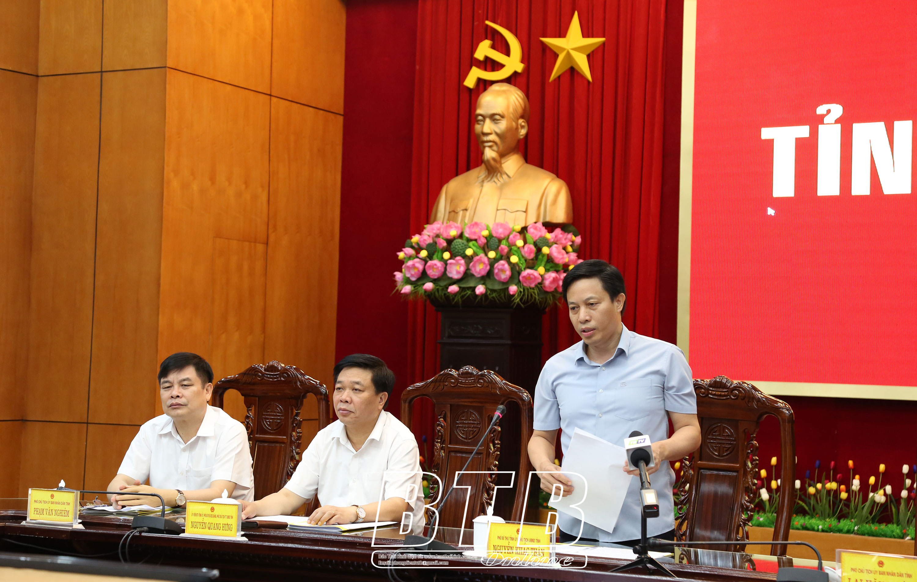 Phát biểu tại hội nghị, đồng chí Lại Văn Hoàn, Tỉnh ủy viên, Phó Chủ tịch UBND tỉnh, Phó Trưởng ban thường trực Ban Chỉ huy PCTT và TKCN tỉnh đã báo cáo Chính phủ và các bộ, ngành trung ương tình hình triển khai ứng phó với bão số 3 tại Thái Bình.