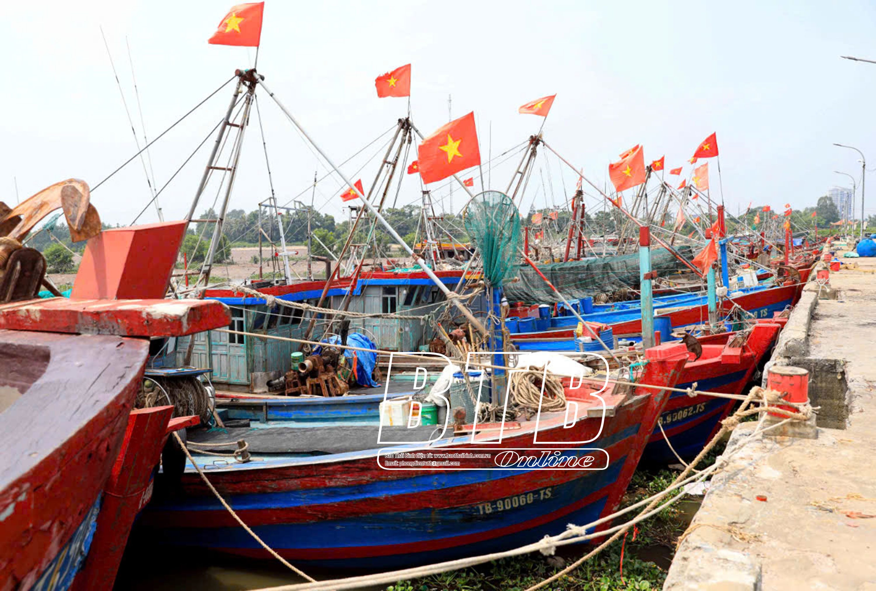 Tàu thuyền neo đậu tại cảng Tân Sơn (Thái Thụy).