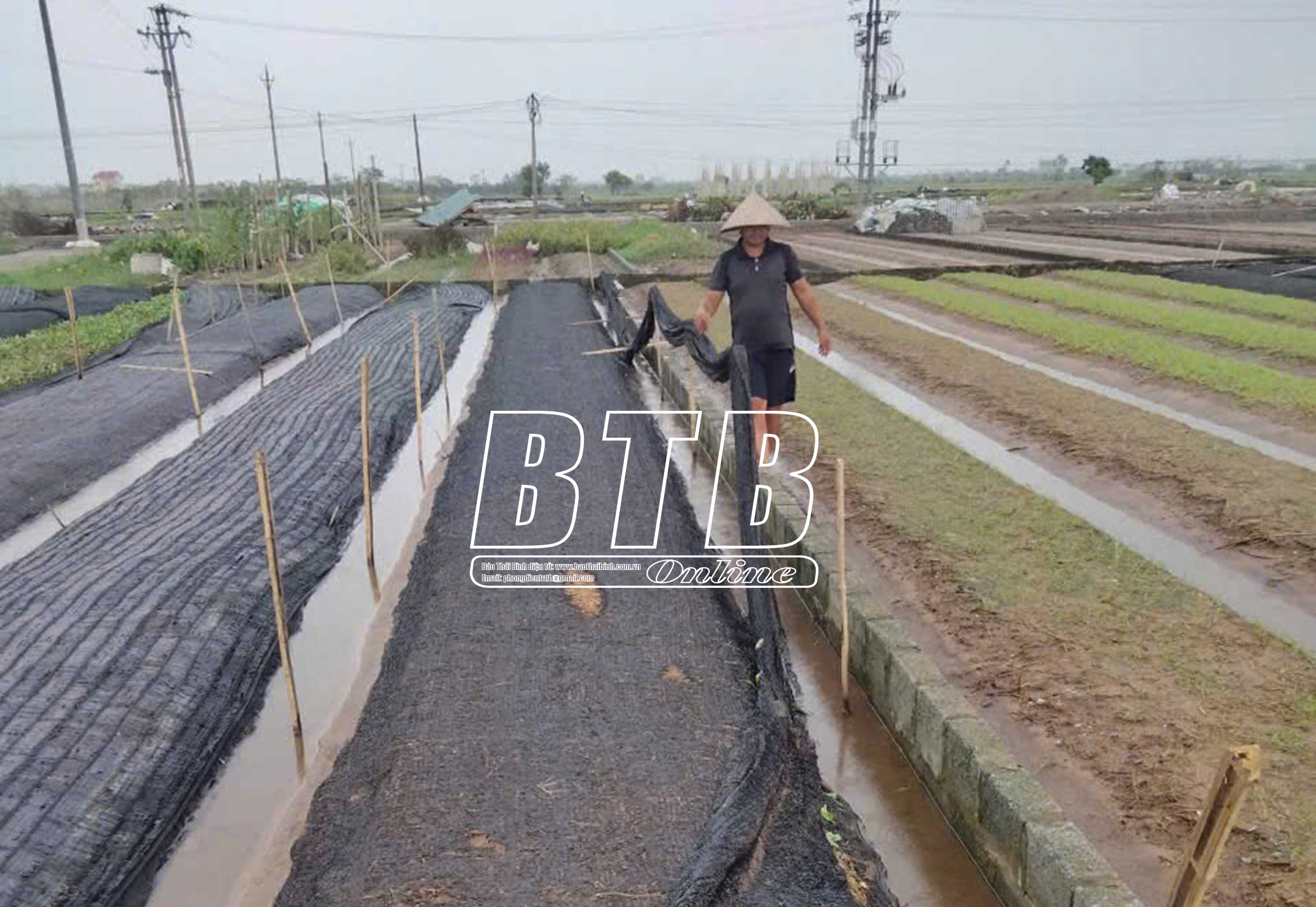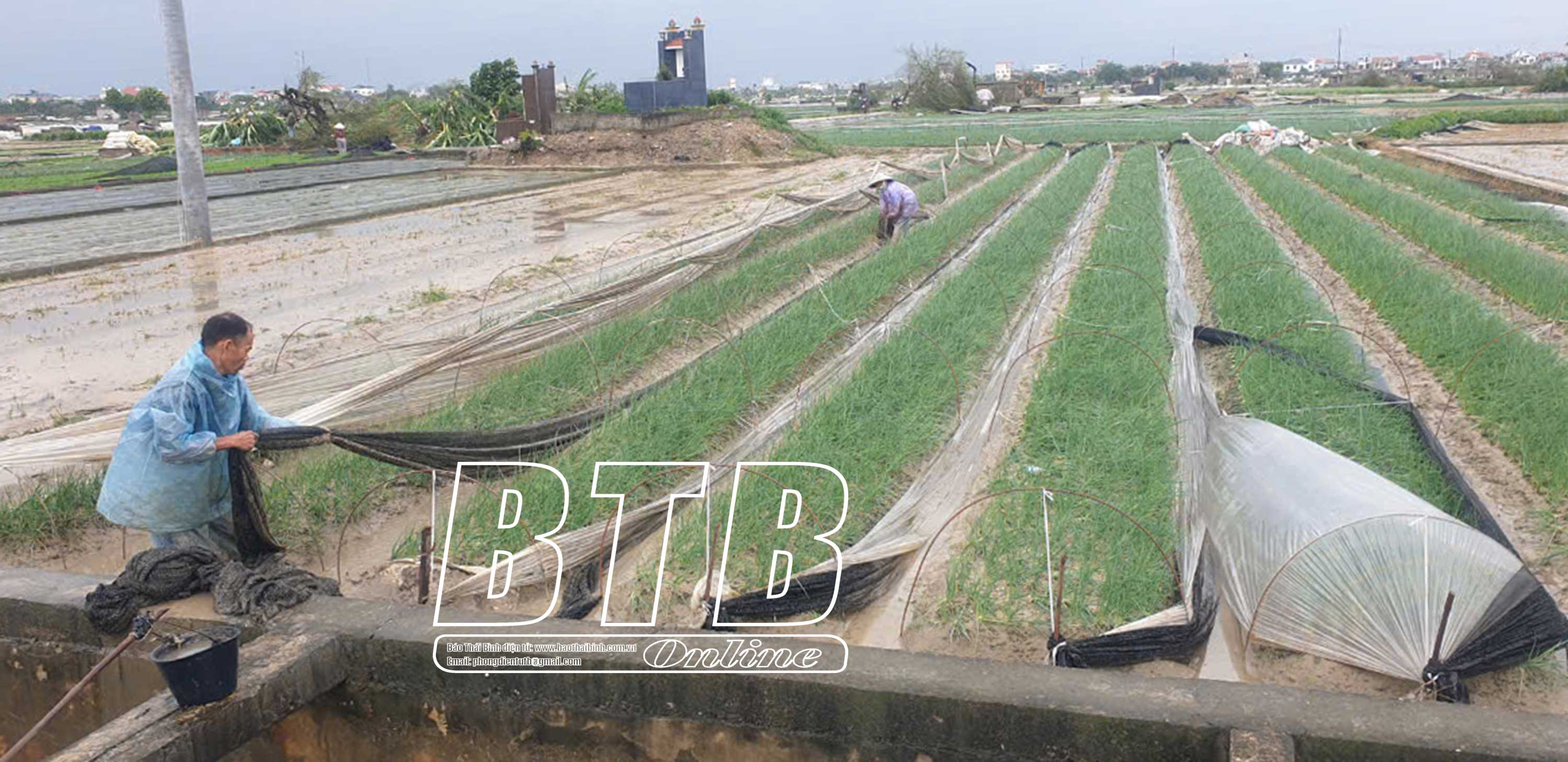 Người dân trồng rau màu tại các địa phương huyện Quỳnh Phụ khẩn trương thu dọn, khắc phục hậu quả bão số 3. Ảnh: Nguyễn Cường