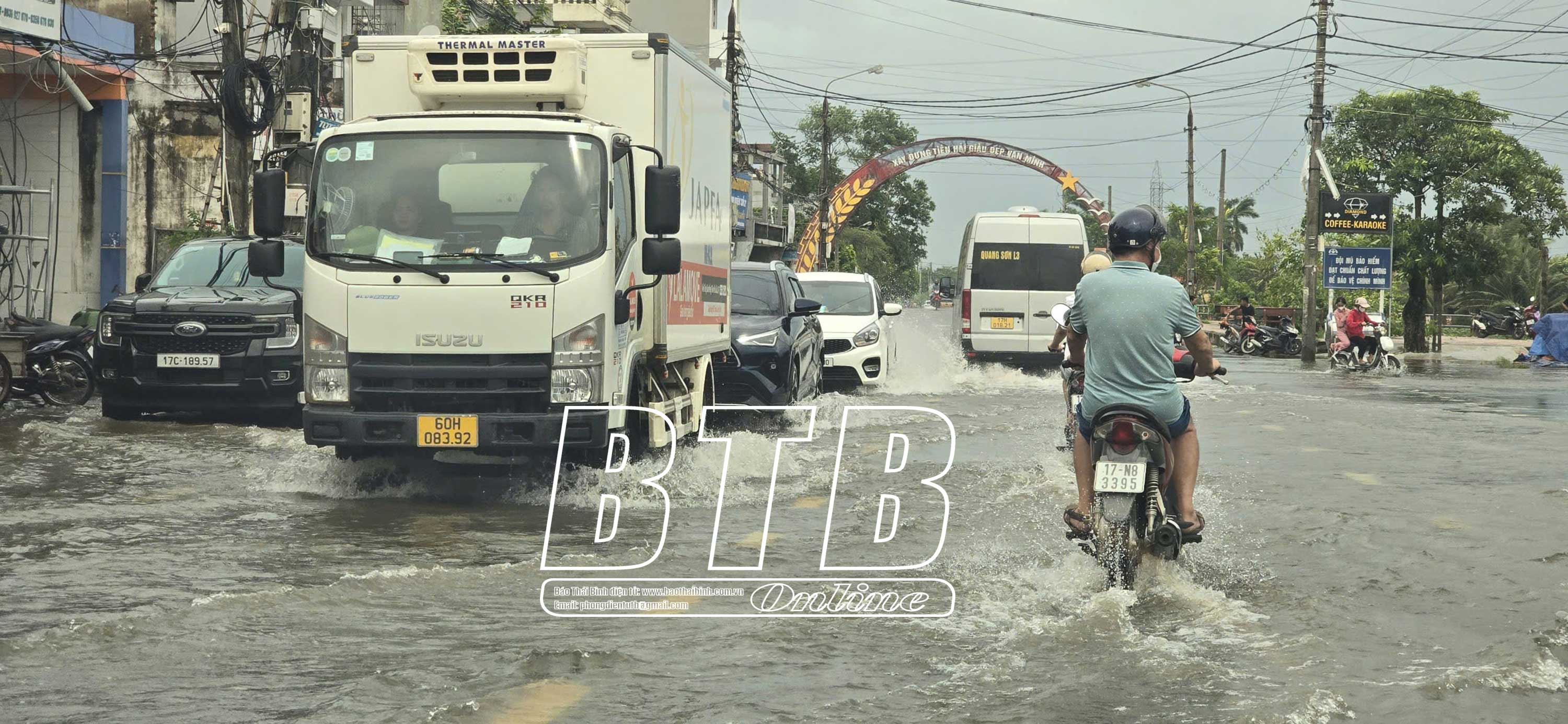 Nhiều tuyến đường trên địa bàn huyện Tiền Hải bị ngập. Ảnh: Trần Tuấn