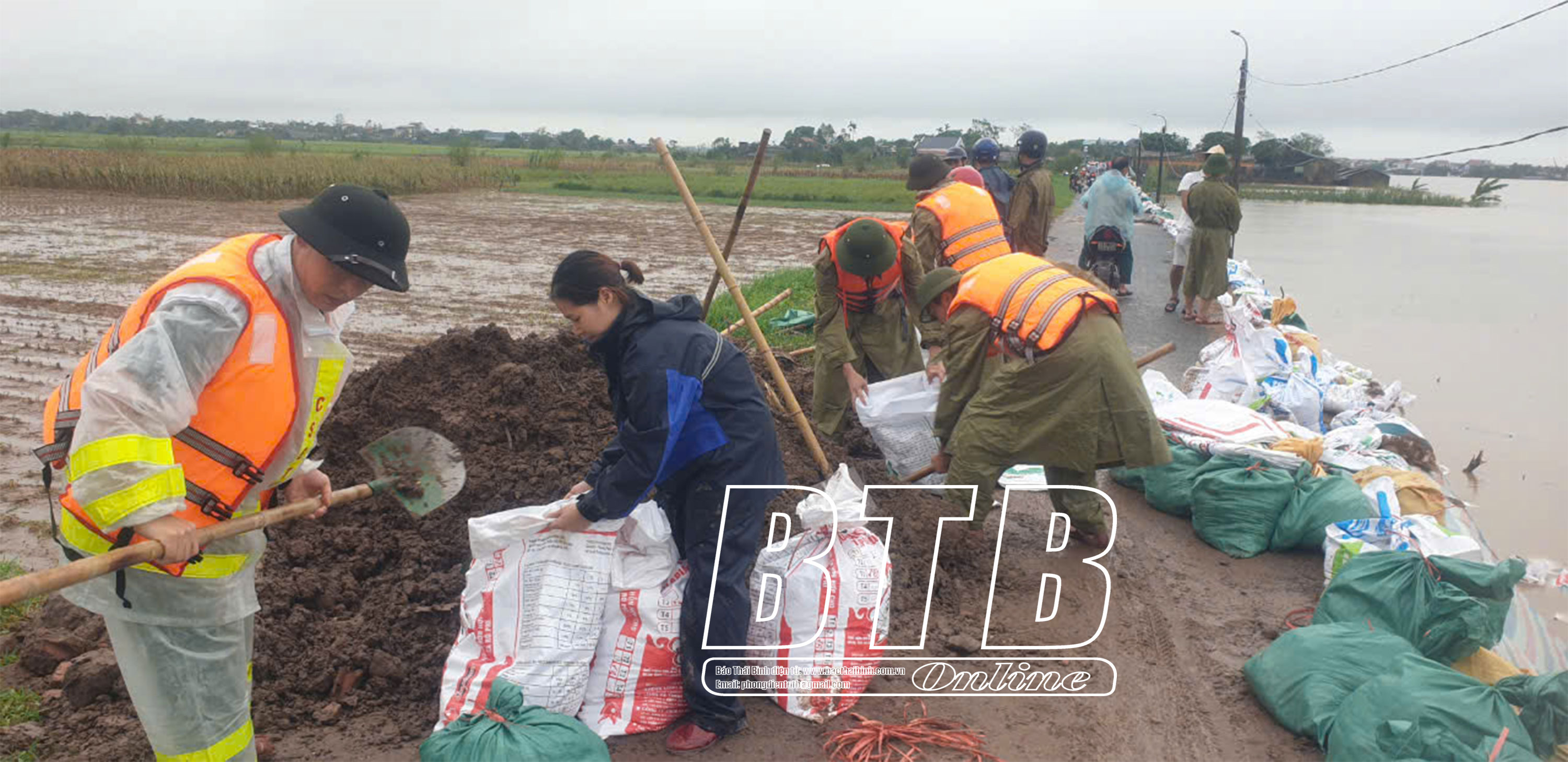 Để bảo đảm an toàn cho tuyến đê bối xã Quỳnh Lâm, ngay trong ngày 12/9, huyện Quỳnh Phụ có công văn điều động lực lượng, vật tư hỗ trợ xã Quỳnh Lâm chống lũ.