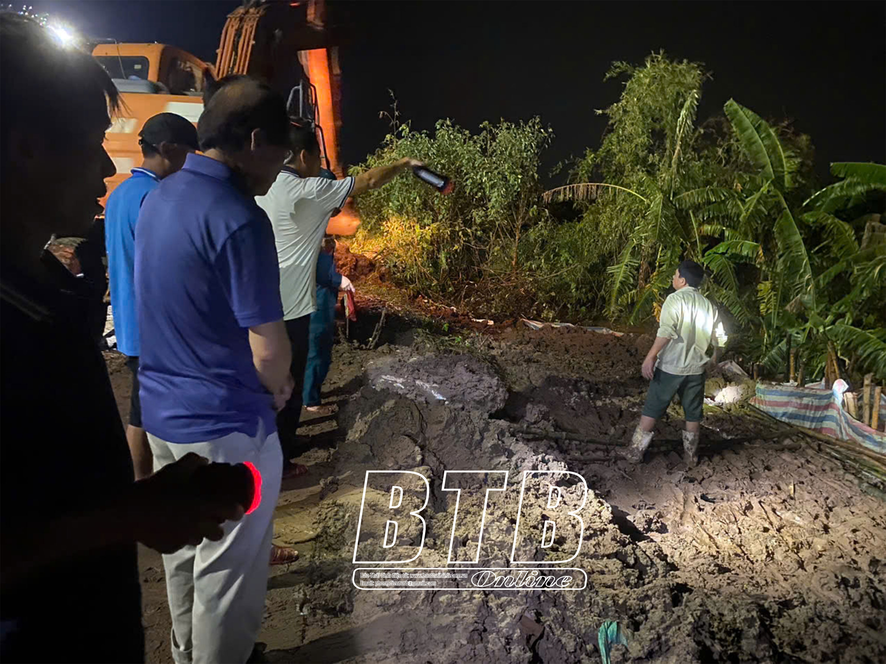Lực lượng chức năng xử lý mạch sủi tại đê tả Hồng Hà II, đoạn qua địa phận xã Vũ Tiến (Vũ Thư) tối ngày 12/9.