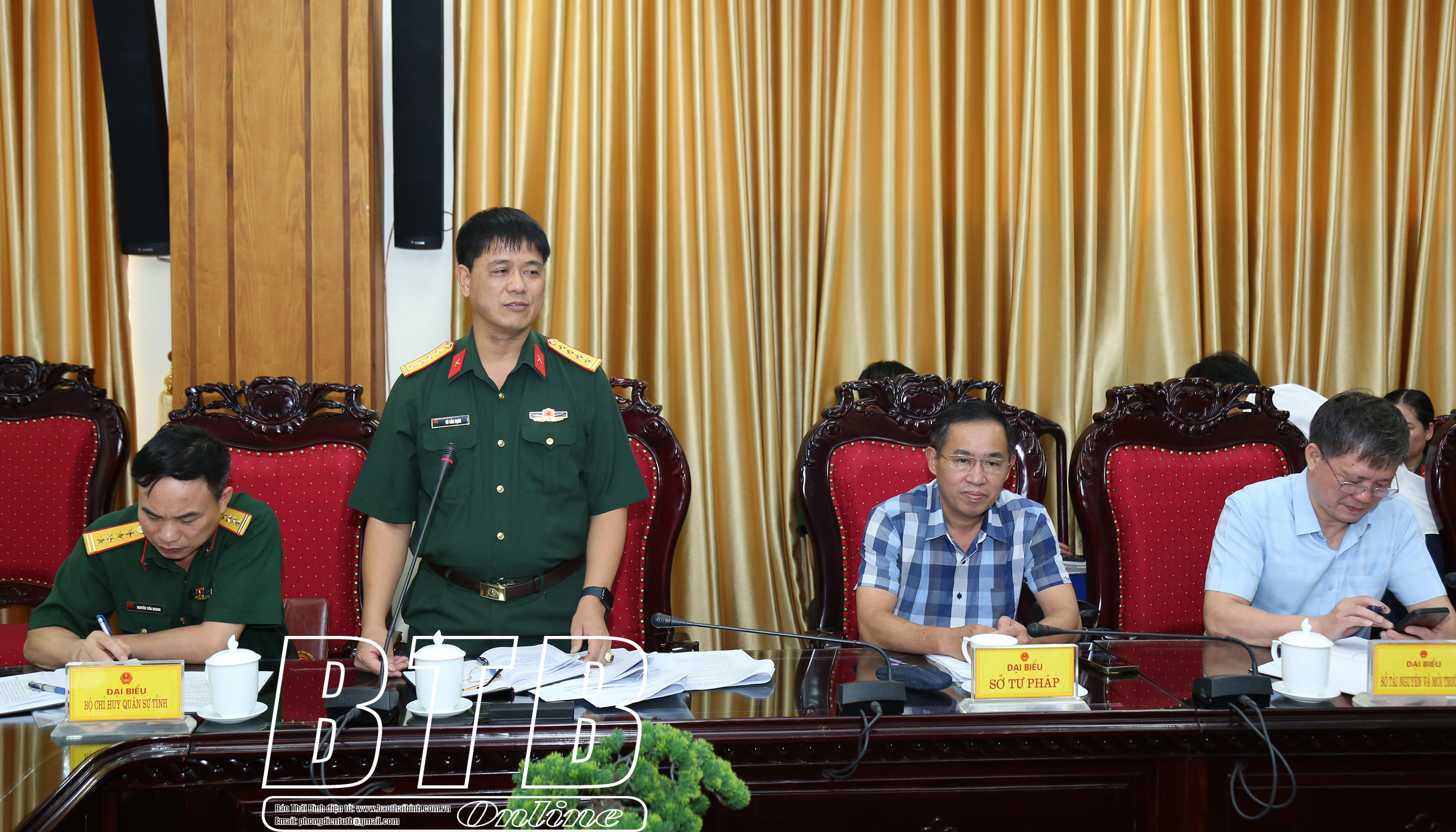 Lãnh đạo Bộ Chỉ huy Quân sự tỉnh phát biểu tại cuộc họp.