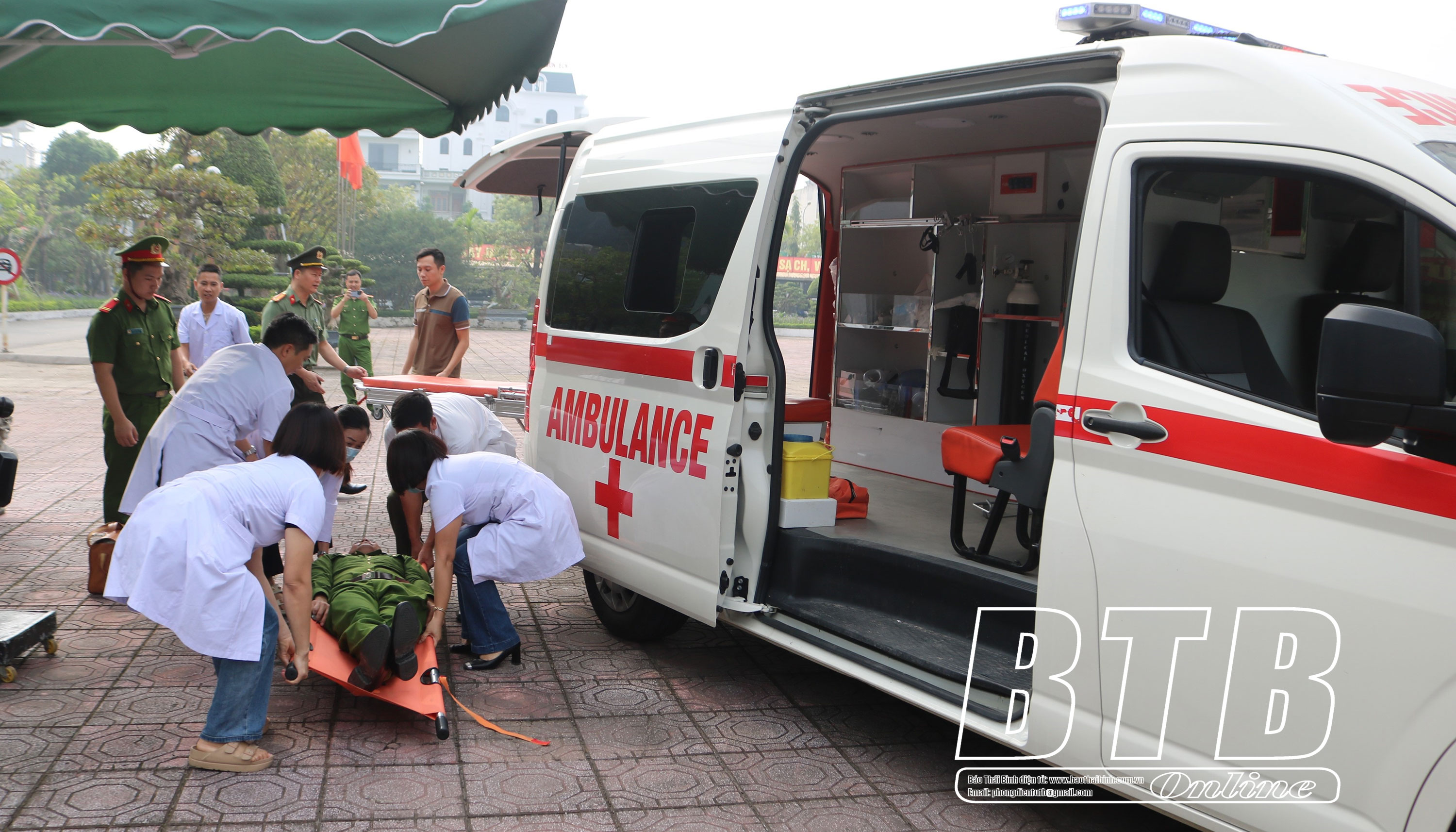 Y, bác sĩ Bệnh xá Công an tỉnh thực tập cấp cứu nạn nhân.