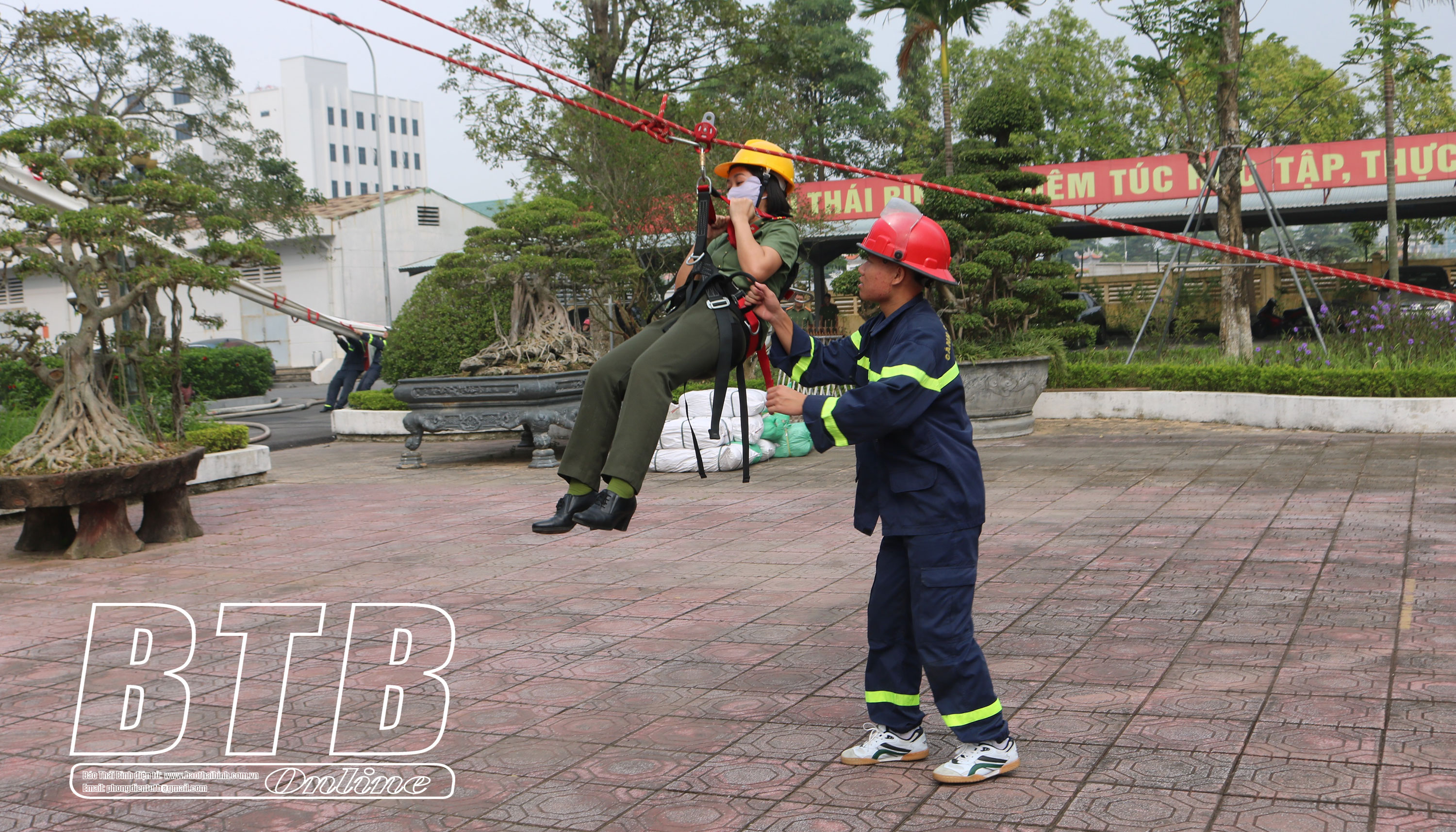 Thực tập CNCH, sơ tán nạn nhân khởi nhà cao tầng bằng thiết bị chuyên dụng.