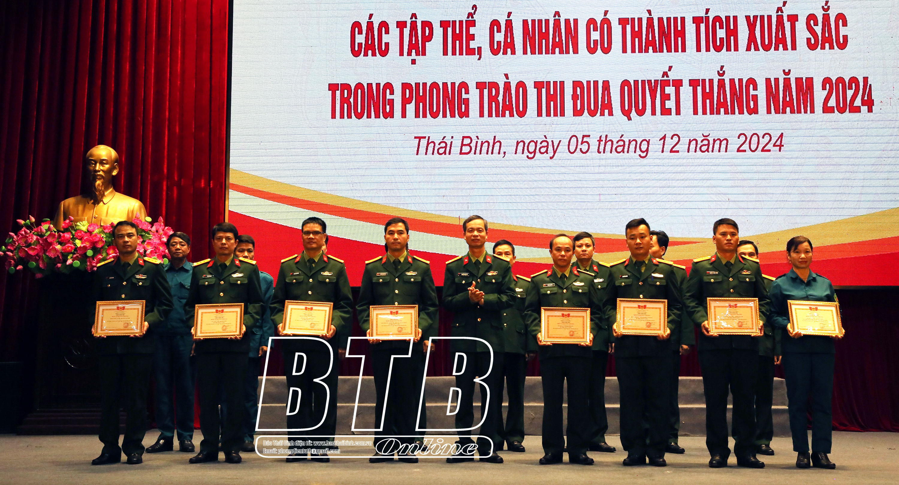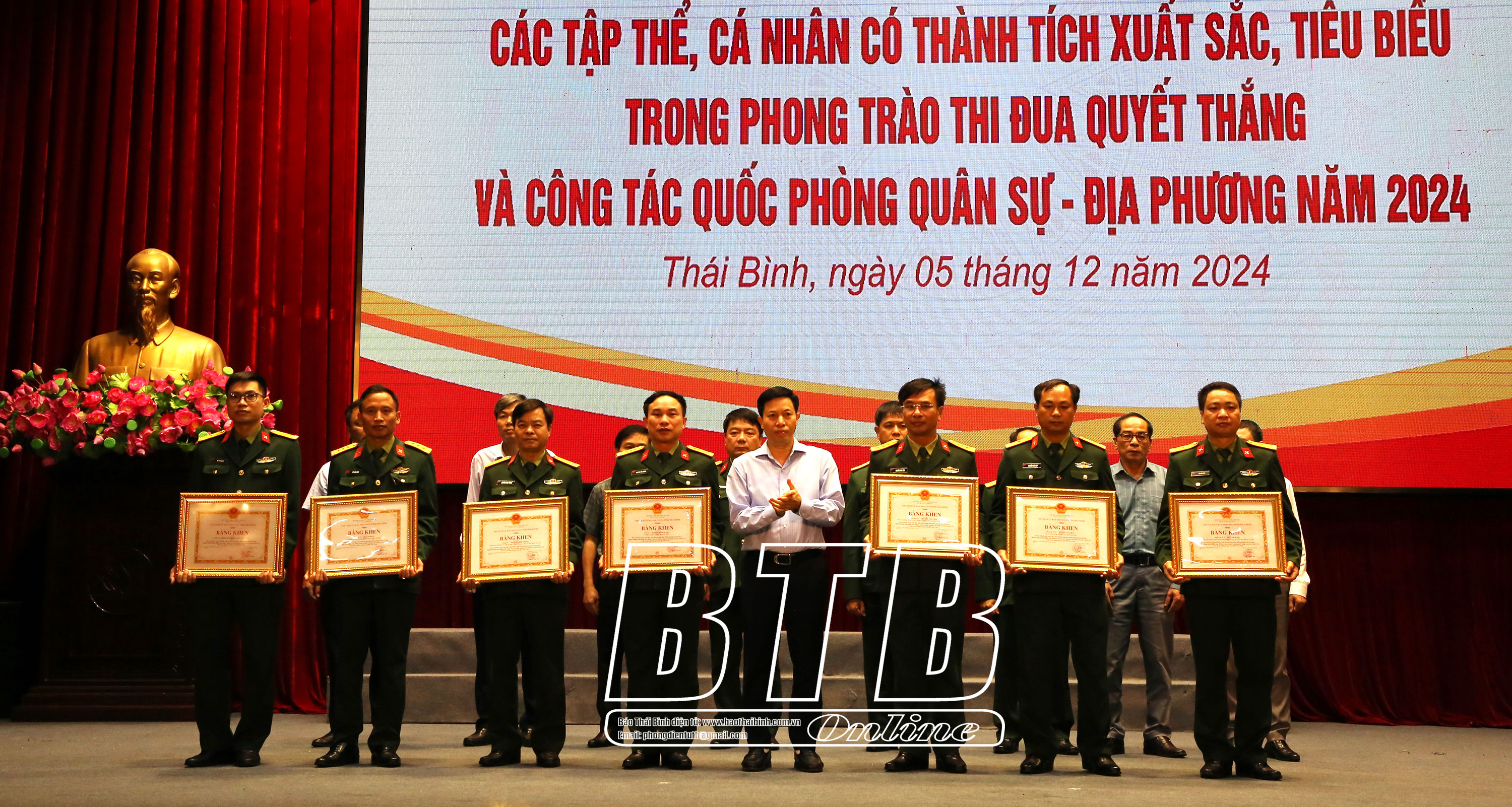 Năm 2024, Tỉnh ủy, HĐND, UBND tỉnh đã tập trung lãnh đạo, chỉ đạo, triển khai thực hiện hoàn thành toàn diện nhiệm vụ QPQSĐP, bảo đảm tốt các tiềm lực trong khu vực phòng thủ. Chỉ đạo Bộ CHQS tỉnh, Công an tỉnh, Bộ Chỉ huy Bộ đội Biên phòng tỉnh duy trì nghiêm chế độ trực sẵn sàng chiến đấu, phối hợp bảo đảm an ninh, an toàn các ngày lễ, tết, sự kiện diễn ra trên địa bàn; huy động hàng chục nghìn lượt cán bộ, chiến sĩ tham gia phòng, chống bão, mưa lũ. Thái Bình là tỉnh đầu tiên tổ chức cuộc diễn tập phòng thủ dân sự ứng phó với bão mạnh, siêu bão và tìm kiếm cứu nạn năm 2024 sau khi Luật Phòng thủ dân sự có hiệu lực; 100% các huyện, thành phố và các xã, phường, thị trấn hoàn thành công tác diễn tập theo kế hoạch. Chỉ đạo thực hiện nghiêm quy trình tuyển chọn, gọi công dân nhập ngũ, giao đủ 2.751 công dân, bảo đảm chỉ tiêu, chất lượng tân binh. Chỉ đạo lực lượng vũ trang tỉnh thực hiện tốt công tác huấn luyện, tham gia hội thi, hội thao đạt thứ hạng cao. Công tác giáo dục quốc phòng toàn dân tiếp tục được quan tâm với nội dung, phương thức tuyên truyền, bồi dưỡng đa dạng, phong phú. An ninh chính trị, trật tự an toàn xã hội trên địa bàn được giữ vững; phòng, chống hiệu quả chiến lược “diễn biến hòa bình”, bạo loạn lật đổ của các thế lực thù địch, bảo vệ Đảng, Nhà nước và nhân dân, tạo môi trường thuận lợi cho phát triển kinh tế - xã hội của tỉnh.