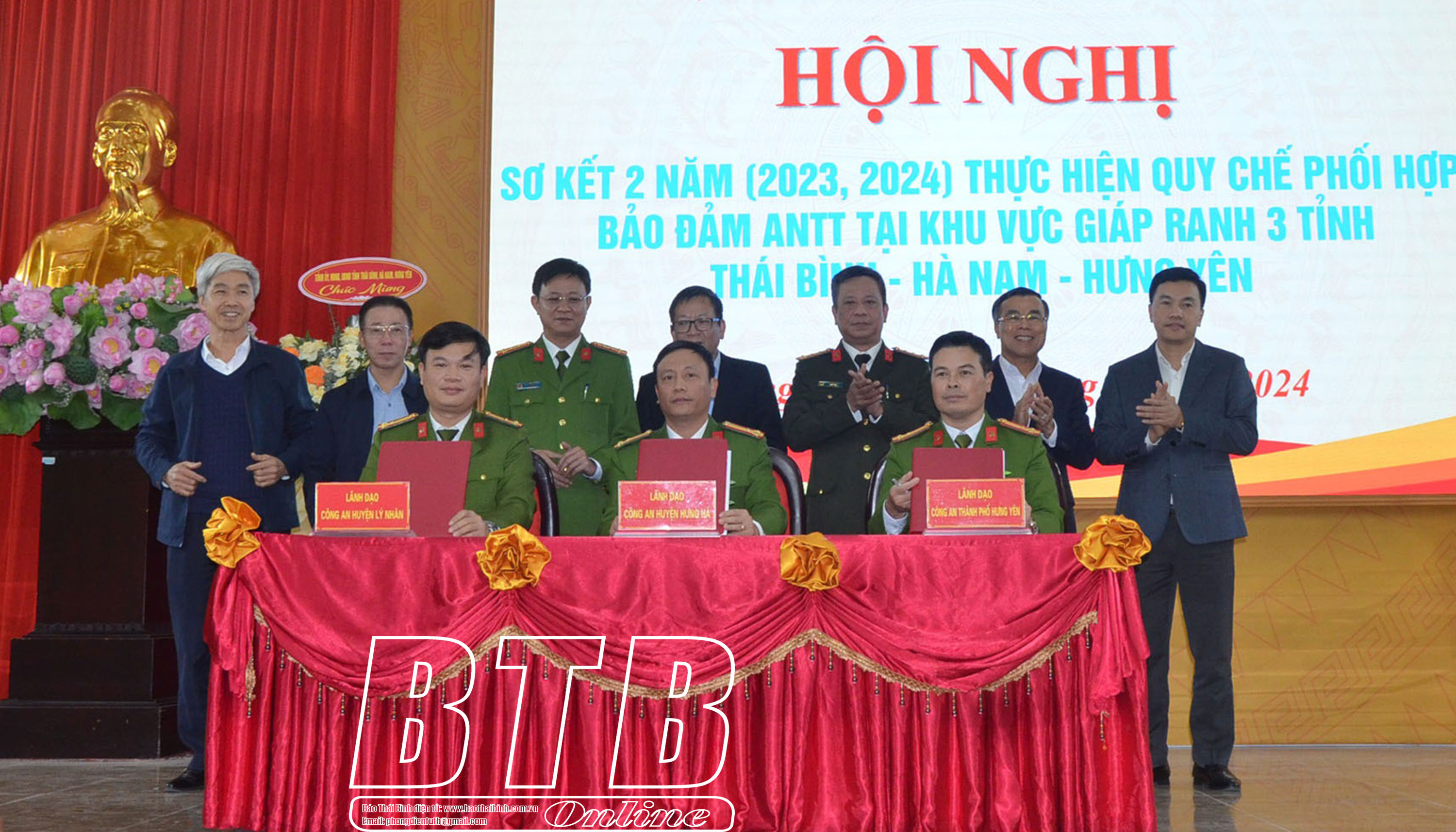 Ký kết quy chế phối hợp bảo đảm ANTT khu vực giáp ranh giữa huyện Hưng Hà với thành phố Hưng Yên (tỉnh Hưng Yên) và huyện Lý Nhân (tỉnh Hà Nam) năm 2025.