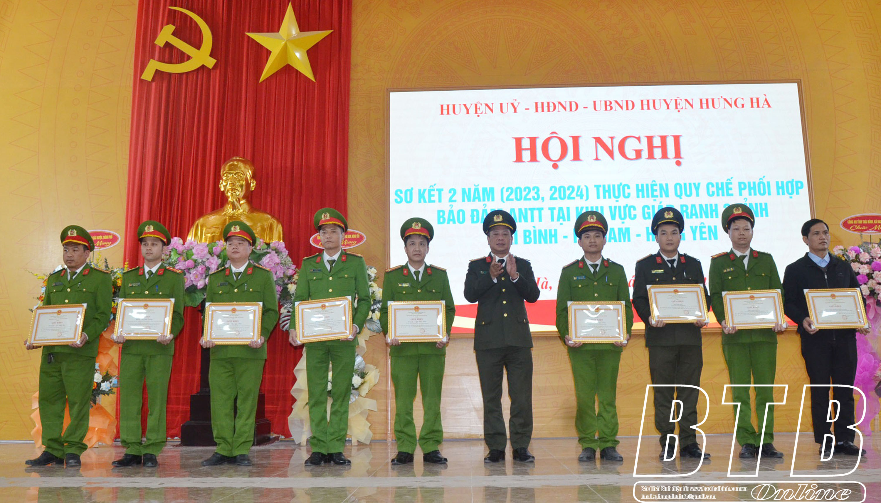 Tại hội nghị, Công an tỉnh, UBND huyện Hưng Hà đã tặng giấy khen cho 19 tập thể, cá nhân của 3 đơn vị có thành tích trong công tác giữ gìn an ninh chính trị, bảo đảm trật tự an toàn xã hội. Đồng thời, tổ chức ký kết quy chế phối hợp bảo đảm ANTT khu vực giáp ranh giữa huyện Hưng Hà với thành phố Hưng Yên và huyện Lý Nhân năm 2025.