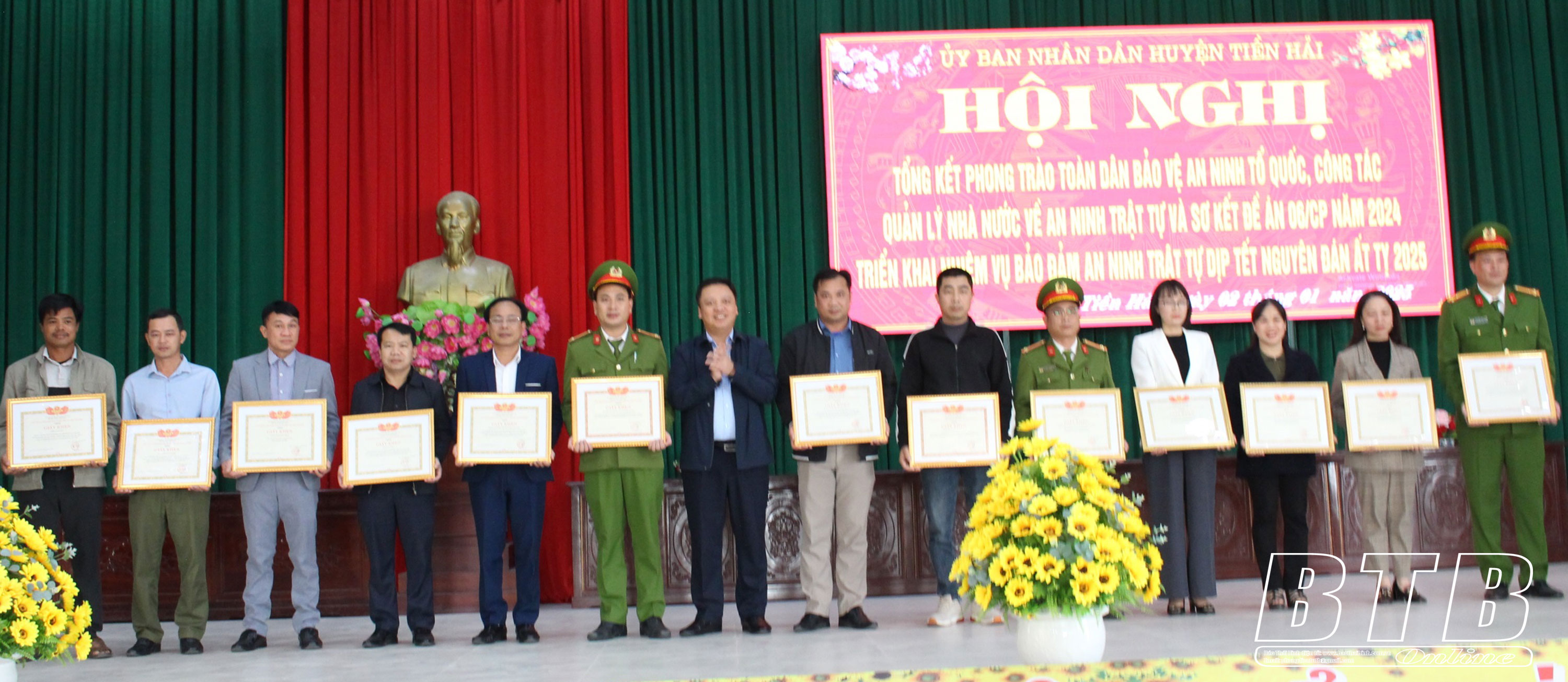 Năm 2024, cấp ủy, chính quyền, các ngành đoàn thể của huyện Tiền Hải triển khai thực hiện có hiệu quả phong trào Toàn dân bảo vệ an ninh Tổ quốc. Trên địa bàn huyện hiện có 248 tổ tự quản về ANTT. Quá trình hoạt động các tổ chức quần chúng trên đã tích cực, tự giác tham gia giúp đỡ các lực lượng chức năng thực hiện tốt công tác quản lý cư trú, nắm chắc tình hình, thực hiện các biện pháp bảo đảm ANTT, cung cấp hàng trăm nguồn tin có giá trị giúp lực lượng công an khám phá, xử lý 45 vụ phạm pháp hình sự, 50 vụ phạm tội về ma túy… Công tác tuyên truyền, vận động giao nộp vũ khí, vật liệu nổ, công cụ hỗ trợ và pháo được triển khai đồng bộ, đạt kết quả tích cực tại các địa bàn trọng điểm. Kết quả đã vận động, thu hồi 18,5kg pháo, 0,5kg thuốc pháo, 3 khẩu súng, 4 quả lựu đạn; phát hiện 7 vụ về pháo và công cụ hỗ trợ, thu giữ 44,8kg pháo, 3 công cụ hỗ trợ…